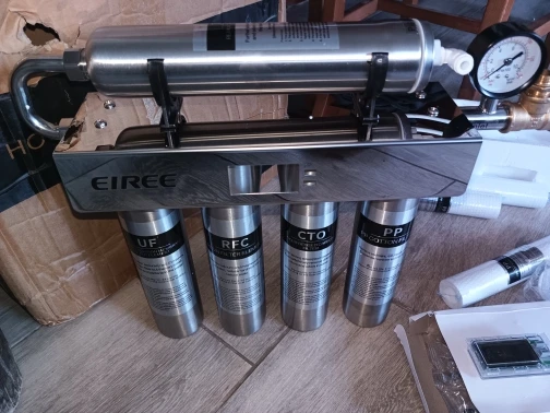 ใช้เวลานานกว่าที่สัญญาไว้ในการจัดส่ง และการติดตามการขนส่งไม่ได้บอกอะไรเกี่ยวกับสถานะของพัสดุ สุดท้ายมันมาถึงในสภาพที่เสียหายมาก โชคดีที่ไม่มีอะไรแตกหัก ฉันได้ติดตั้งมันแล้วและน้ำมีรสชาติดีมาก ไม่มีกลิ่นหรือรสชาติที่ผิดปกติ มันมีอัตราการไหลที่สูง ซึ่งทำให้ฉันประหลาดใจ เนื่องจากฉันเคยใช้ระบบออสโมซิสอื่นที่มีอัตราการไหลจำกัดมาก อีกทั้งวัสดุก็ดูดีมาก ทำจากสแตนเลส