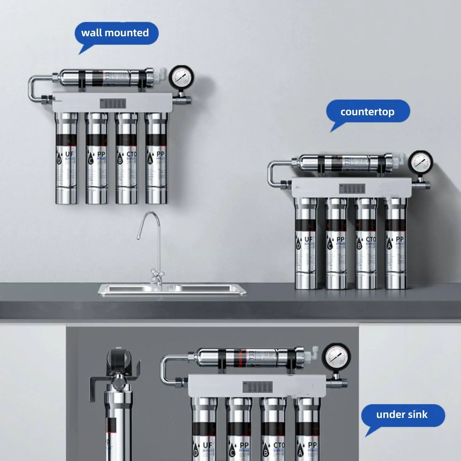 under sink, wall mounted, countertop |