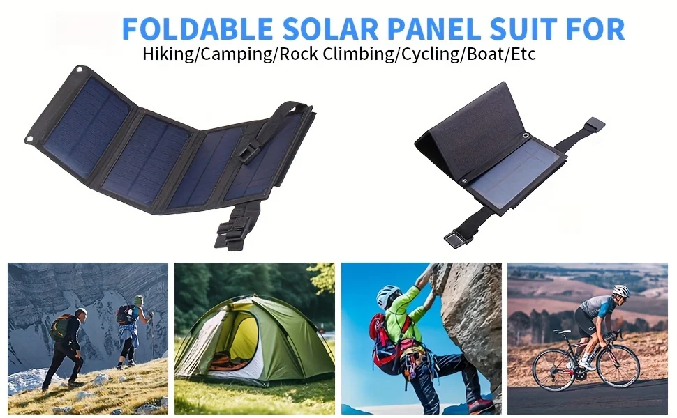 แผงโซลาร์เซลล์แบบพกพาพร้อม USB สำหรับการเดินป่า ตั้งแคมป์ ชาร์จแบตเตอรี่โทรศัพท์มือถือ แบตสำรอง แผงชาร์จ