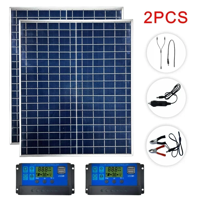 1000W 500W 12V ชุดแผงพลังงานแสงอาทิตย์พลังงานแสงอาทิตย์ 100A Controller เครื่องชาร์จพลังงานแสงอาทิตย์, เหมาะสําหรับ Fast แบตเตอรี่ในบ้าน/ตั้งแคมป์/RV