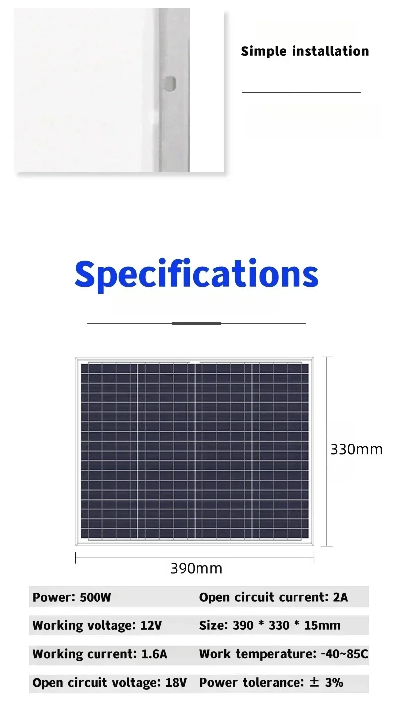 500W100 0W ชุดแผงโซล่า12V ที่ควบคุม100A แผงโซล่าพอร์ต USB ชาร์จแบตเตอรี่พลังงานแสงอาทิตย์แบบพกพาสำหรับการตั้งแคมป์กลางแจ้งมือถือ RV