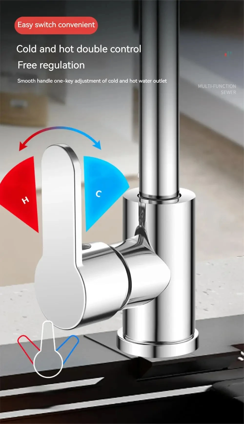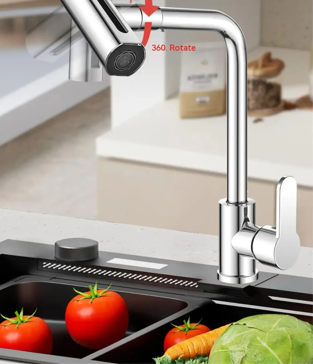 ก๊อกน้ำห้องครัวสีเทาปืนทำจากสแตนเลส 4 โหมดการไหลของน้ำ 360 ° แกนวาล์วเซรามิกแบบหมุน ควบคุมน้ำร้อนและน้ำเย็น จาก 2 รีวิว