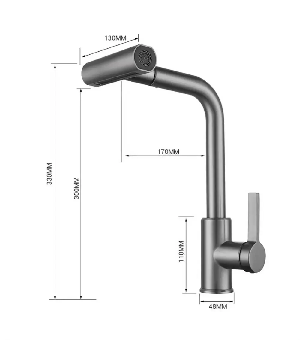 ก๊อกน้ำห้องครัวสีเทาปืนทำจากสแตนเลส 4 โหมดการไหลของน้ำ 360 ° แกนวาล์วเซรามิกแบบหมุน ควบคุมน้ำร้อนและน้ำเย็น