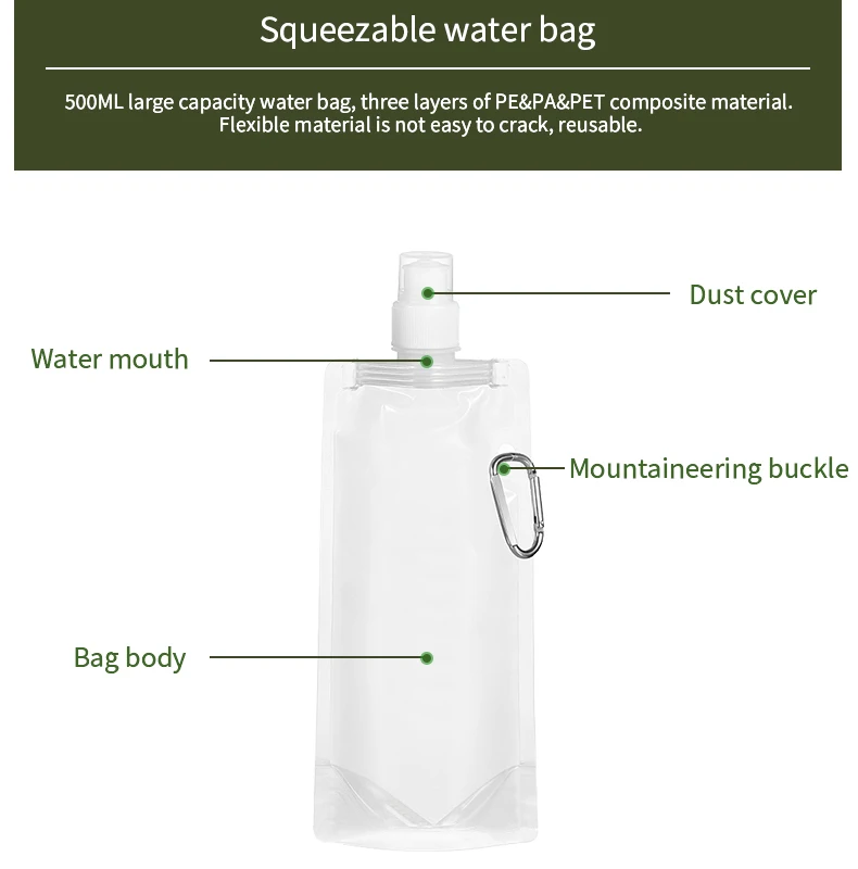 ถุงน้ําความจุขนาดใหญ่ 480 มล. วัสดุคอมโพสิต PE&PA&PET สามชั้นวัสดุยืดหยุ่นไม่แตกง่ายนํากลับมาใช้ใหม่ได้