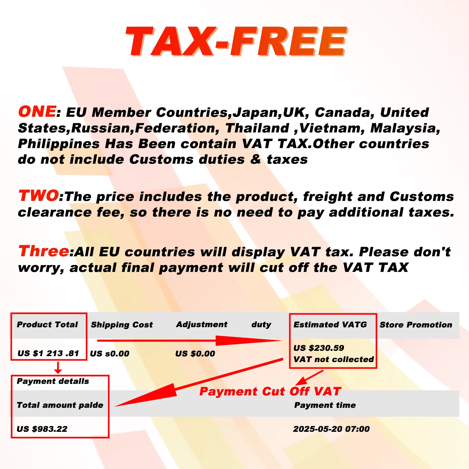 สาม: ทุกประเทศในสหภาพยุโรปจะแสดงภาษี VATโปรดอย่ากังวล การชำระเงินงวดสุดท้ายจะถูกหักภาษี VAT ออกไป