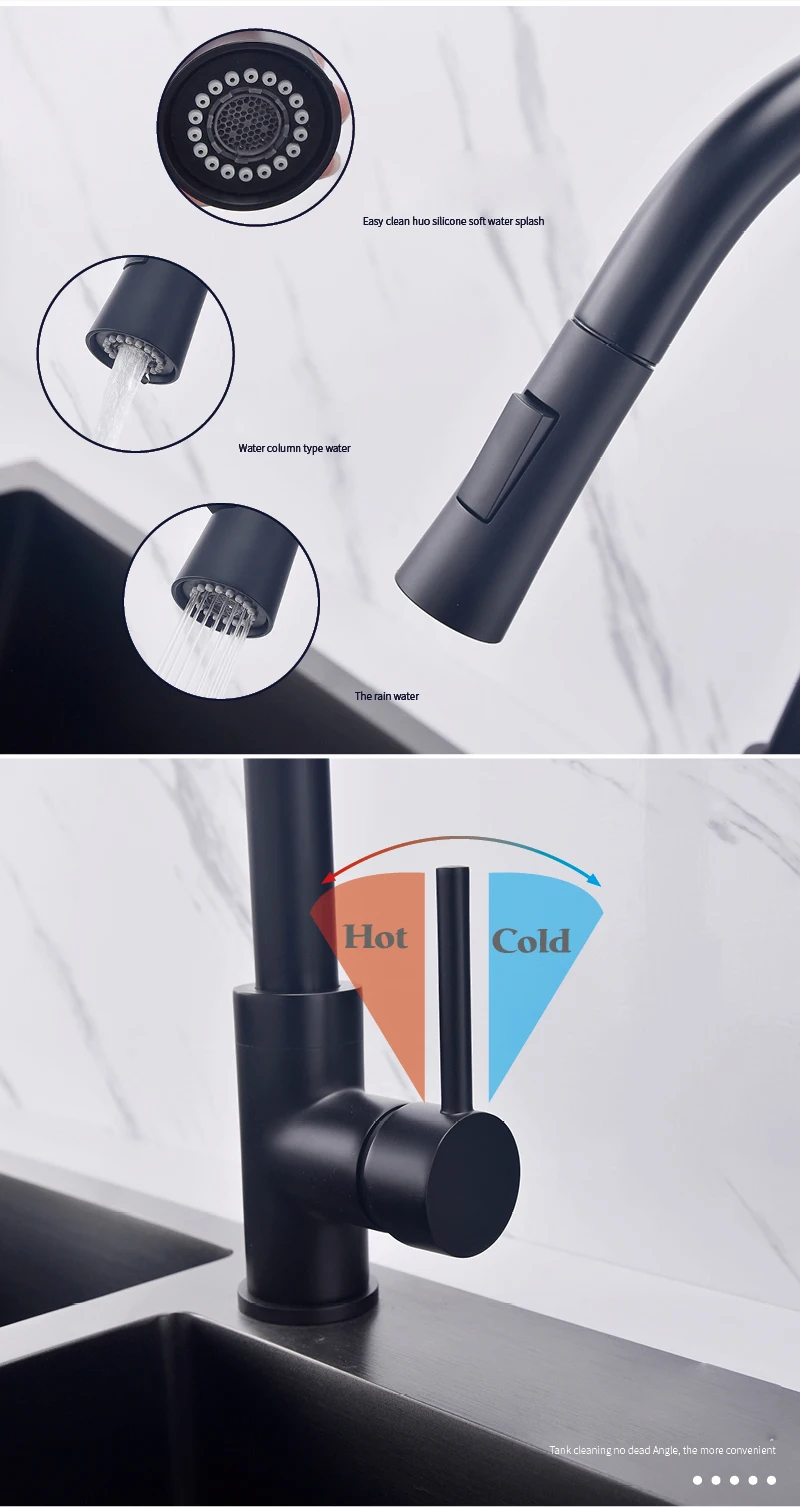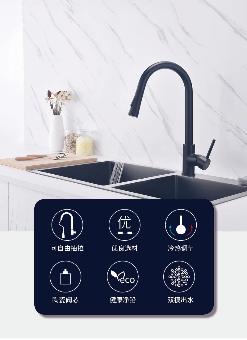 ☛ หัวฉีดแบบดึงออก: หัวฉีดและหัวพ่นหมุนได้ 360 องศา, หัวพ่นแบบโค้งสูงหมุนได้ 360 องศา สามารถให้การล้างอ่างล้างจานได้รอบด้าน, ก๊อกน้ำแบบมือจับเดี่ยวสามารถควบคุมอุณหภูมิและปริมาณน้ำได้สะดวกยิ่งขึ้นก๊อกน้ำอเนกประสงค์สำหรับอ่างล้างจานช่วยอำนวยความสะดวกในงานต่างๆ ภายในพื้นที่ครัว
