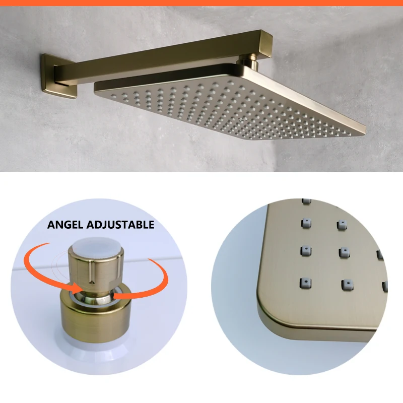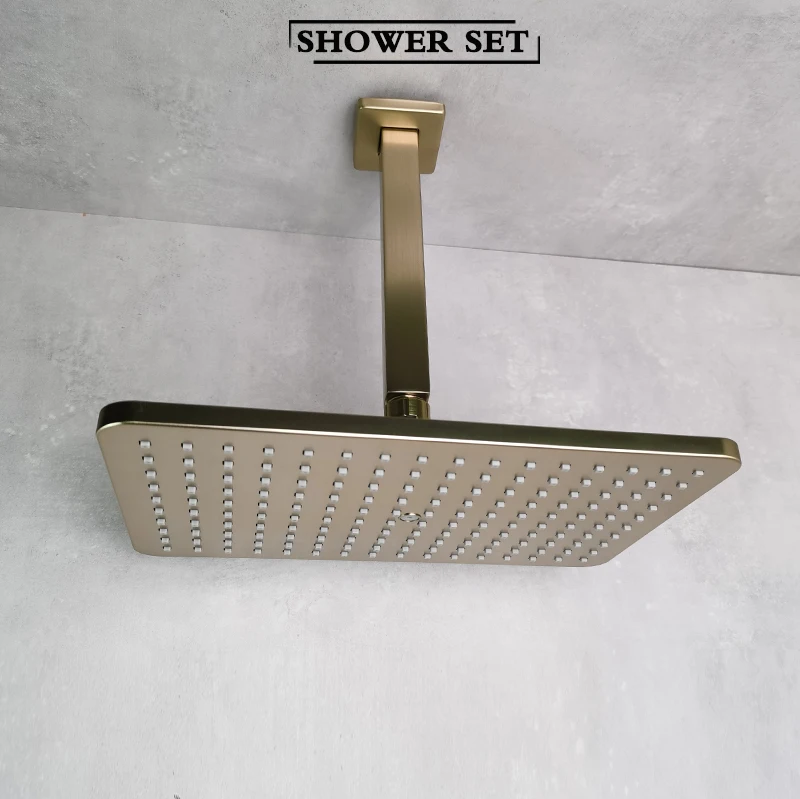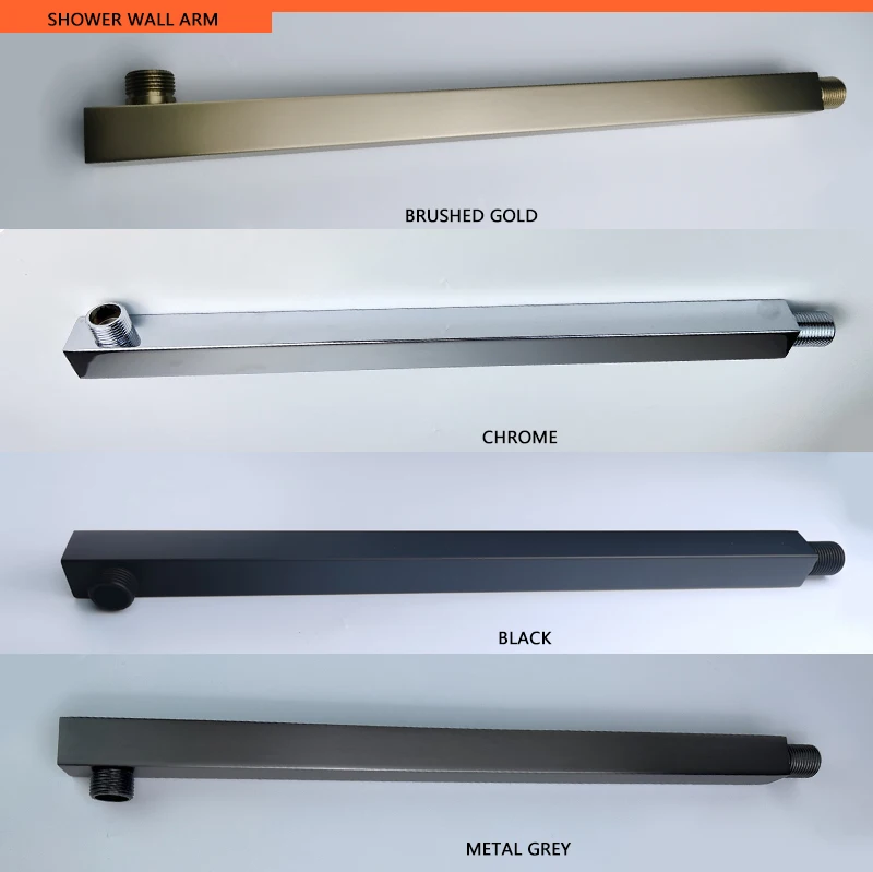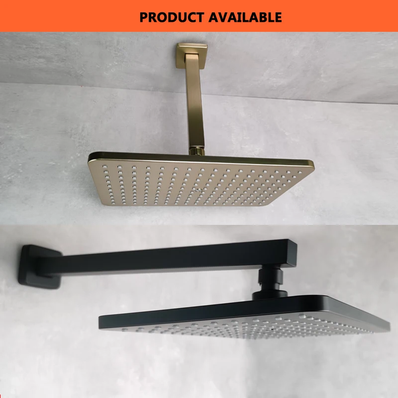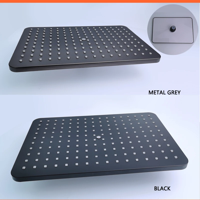 เหนือศีรษะชุดสแควร์ ABS Chrome/Matt สีดำ/แปรงทอง/โลหะสีเทาพลาสติกฝักบัวสแตนเลสติดผนัง/เพดาน