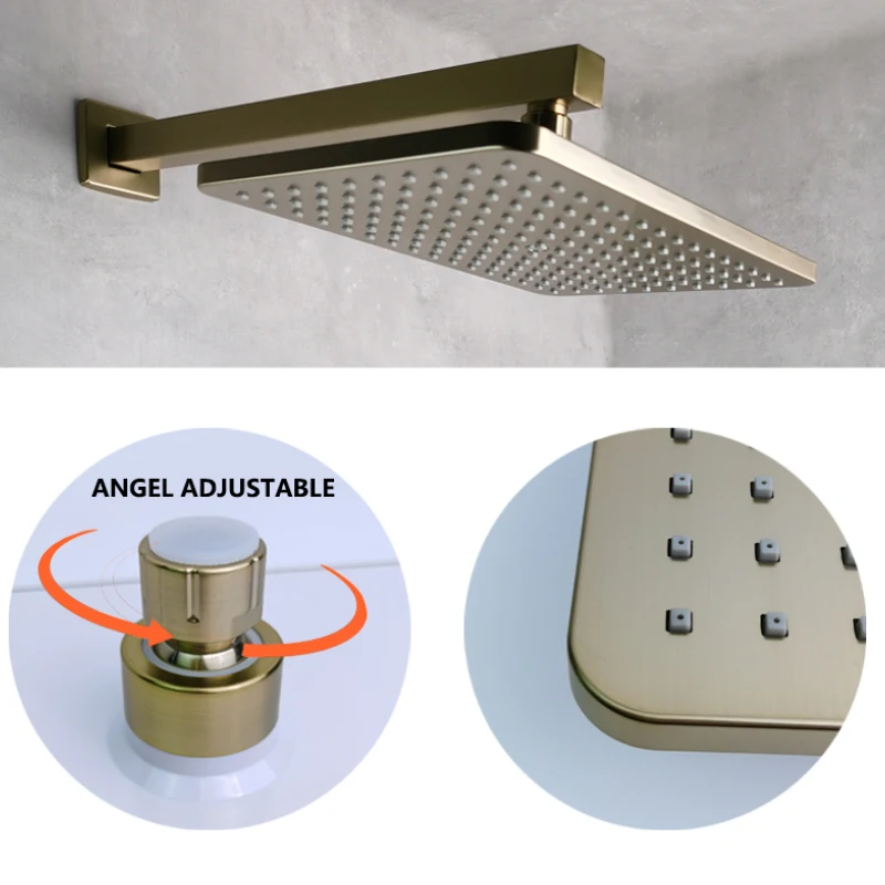เหนือศีรษะชุดสแควร์ ABS Chrome/Matt สีดำ/แปรงทอง/โลหะสีเทาพลาสติกฝักบัวสแตนเลสติดผนัง/เพดาน