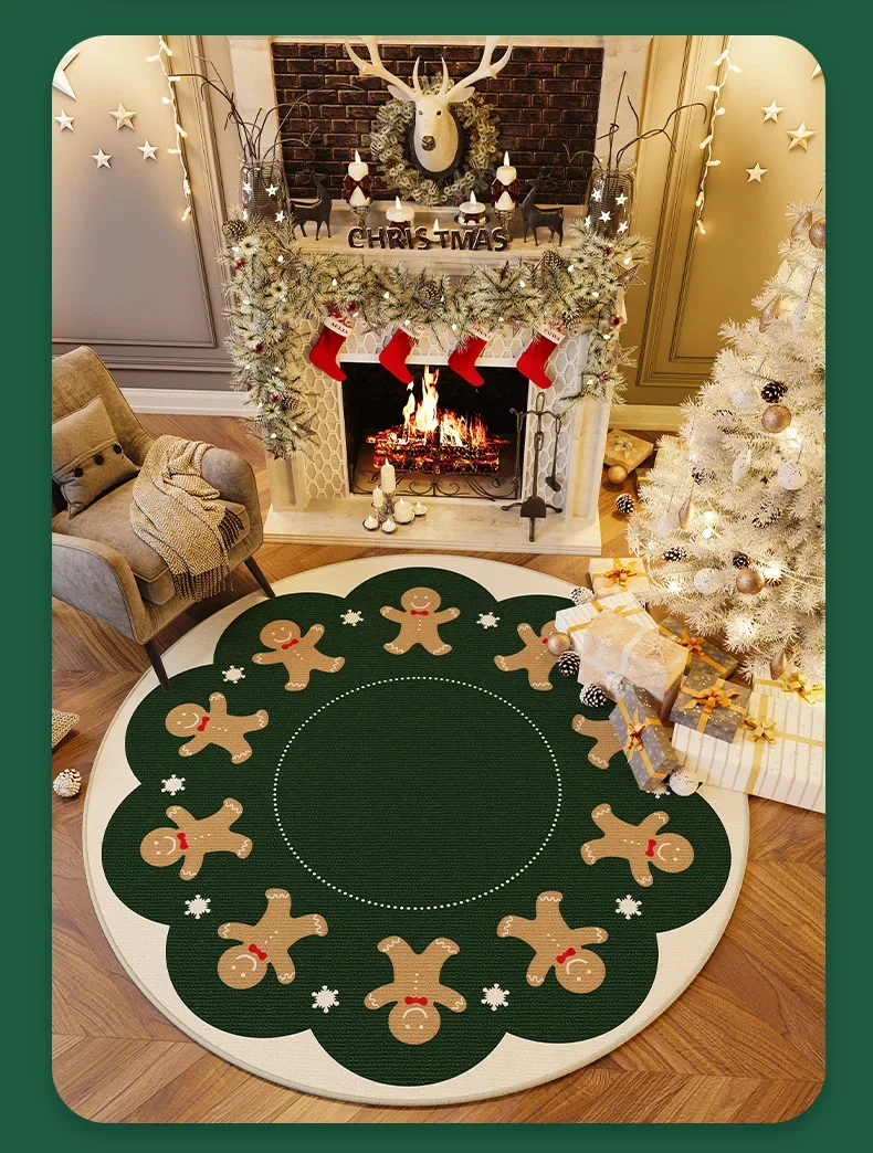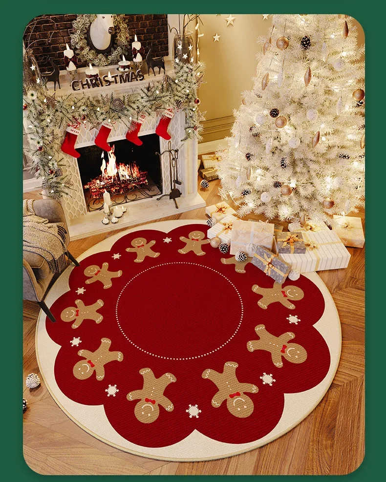 Vikama พรมขนมปังขิงตกแต่งคริสต์มาสมนุษย์พรมทรงกลมห้องรับแขกสีแดงระเบียงพรมในห้องน้ำเทศกาลคริสต์มาสต้นคริสต์มาสกันลื่น