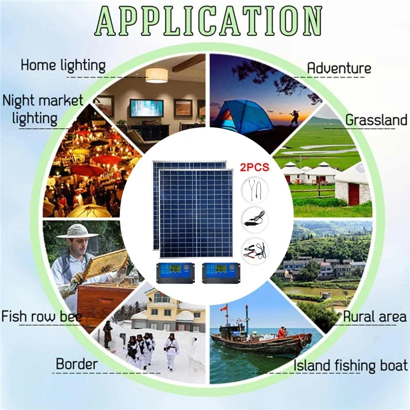 1000W 500W 12V ชุดแผงพลังงานแสงอาทิตย์พลังงานแสงอาทิตย์ 100A Controller เครื่องชาร์จพลังงานแสงอาทิตย์, เหมาะสําหรับ Fast แบตเตอรี่ในบ้าน/ตั้งแคมป์/RV