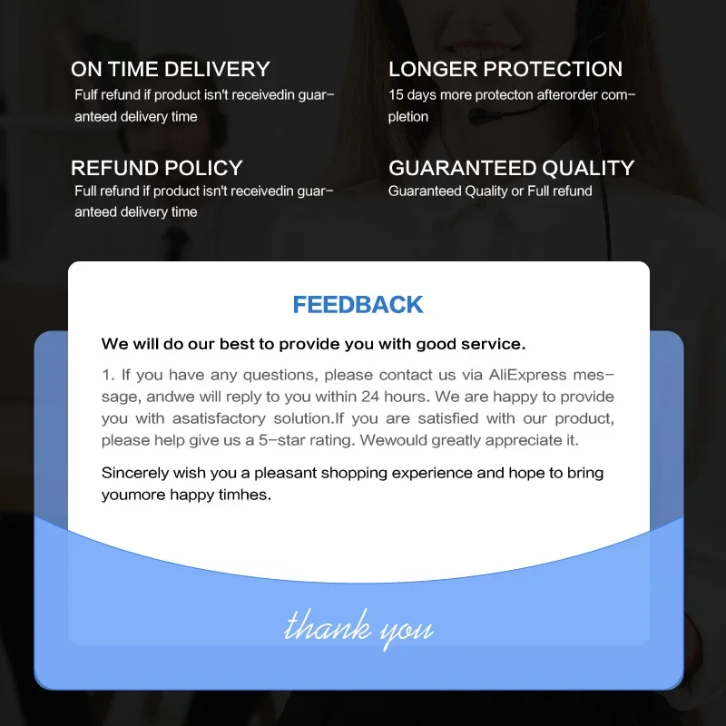 ด้วยความเข้าใจถึงความไม่สะดวกที่เกิดจากความล่าช้า เราจึงมีตัวเลือกเพื่อให้คุณพึงพอใจ หากคำสั่งซื้อของคุณล่าช้าอย่างมาก คุณสามารถเลือกที่จะดำเนินการต่อ แก้ไข หรือยกเลิกเพื่อรับเงินคืนเต็มจำนวนได้ ทีมบริการลูกค้าของเราพร้อมให้ความช่วยเหลือเสมอสำหรับการเปลี่ยนแปลงใดๆ ในคำสั่งซื้อของคุณ
