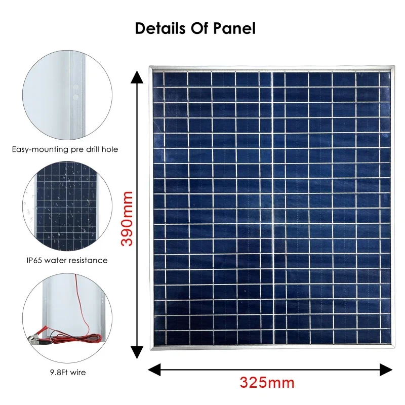 ชุดแผงโซลาร์เซลล์ 12V กันน้ำระดับ IP65 ประสิทธิภาพสูง สำหรับชาร์จแบตเตอรี่รถยนต์ ชาร์จไฟแบบ Trickle ด้วยพลังงานแสงอาทิตย์ สำหรับรถบ้านและรถแทรกเตอร์