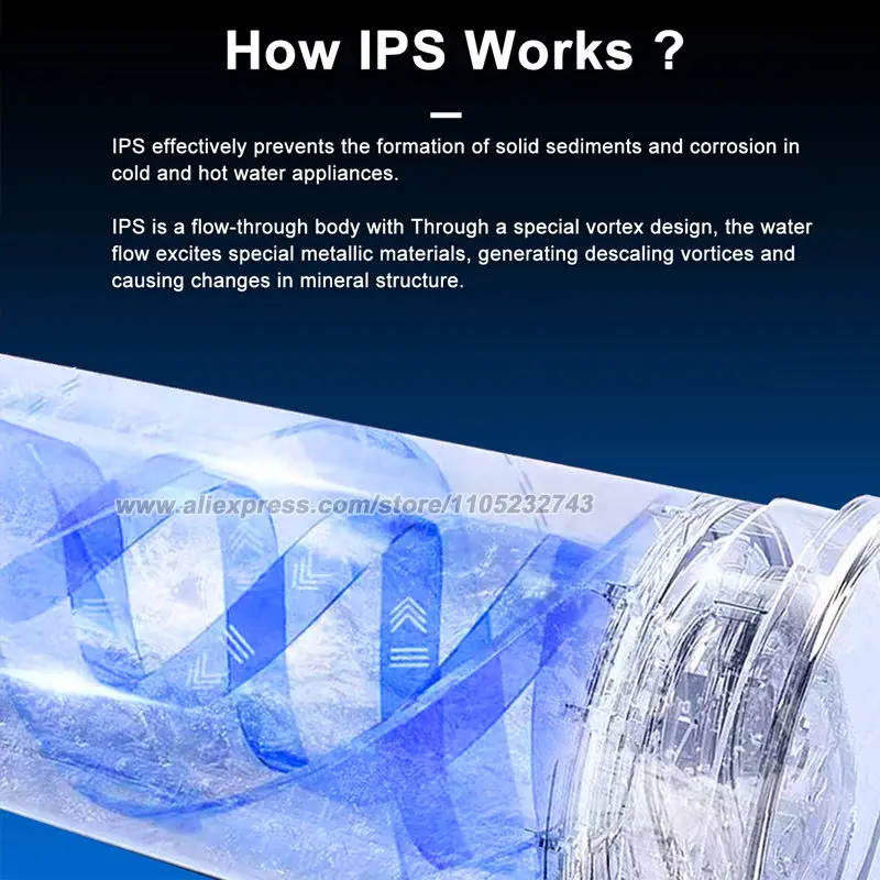 ●IPS (ระบบป้องกันการเกิดตะกรัน IPS) ได้รับการออกแบบมาเพื่อการบำบัดน้ำด้วยกระบวนการทางกายภาพและกัลวานิกสำหรับครัวเรือนและอาคารสาธารณะ