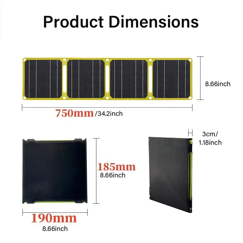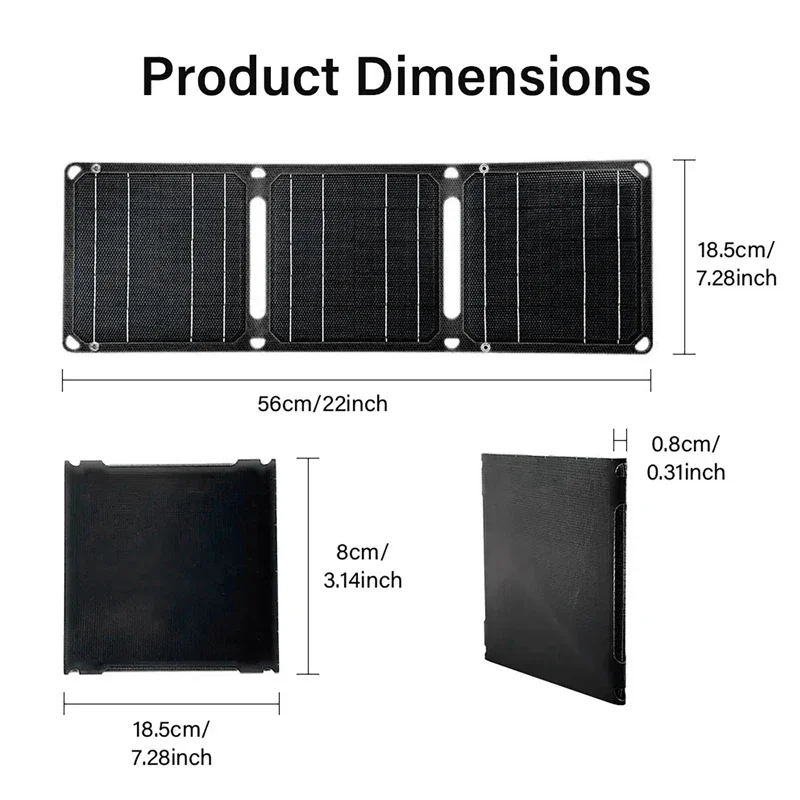 แผงโซลาร์เซลล์พับได้ 4 ทบ 100 วัตต์ แผงโซลาร์เซลล์พกพา 20 วัตต์/ชม. ชาร์จเร็ว USB 5V DC แผงโซลาร์เซลล์แบบเต็มเวลา แหล่งจ่ายไฟเคลื่อนที่