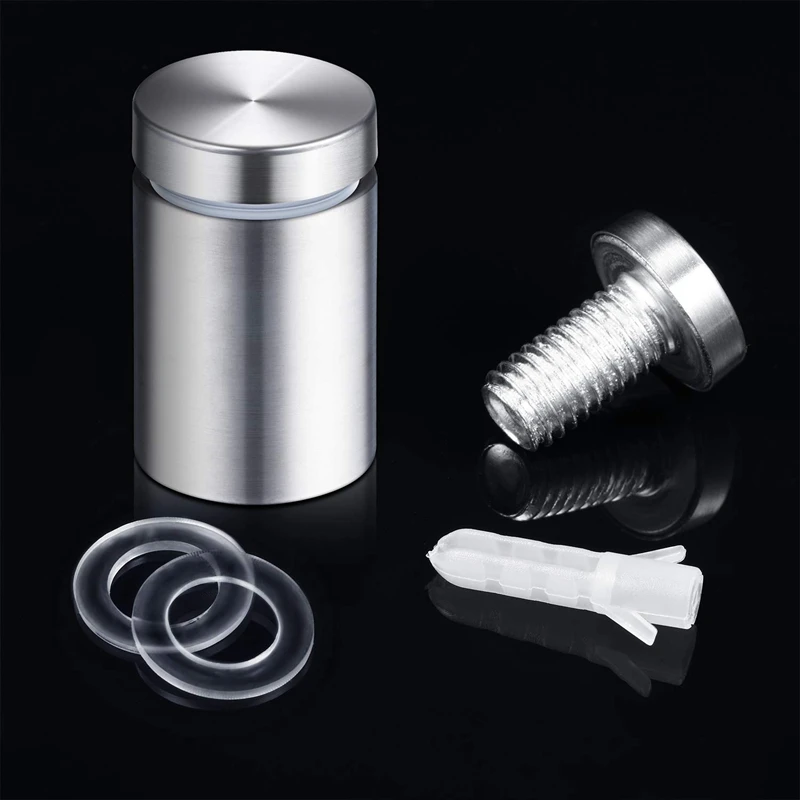 สกรูยึดป้ายโฆษณา 50/40/30/10 ชิ้น ขนาด 12/16/19 มม. สกรูสแตนเลสสำหรับติดผนัง กระจก/อะคริลิค พร้อมอุปกรณ์ยึด