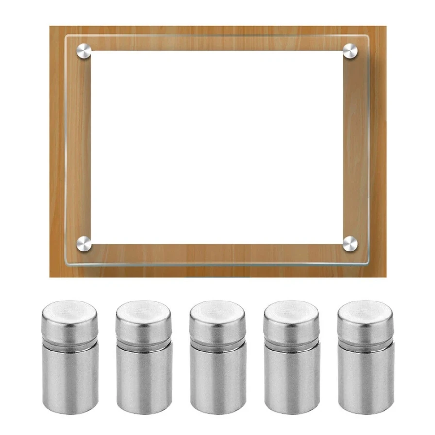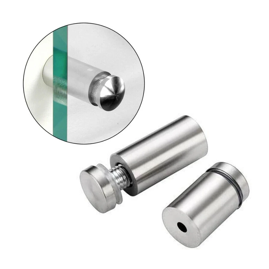 สกรูยึดป้ายโฆษณา 50/40/30/10 ชิ้น ขนาด 12/16/19 มม. สกรูสแตนเลสสำหรับติดผนัง กระจก/อะคริลิค พร้อมอุปกรณ์ยึด