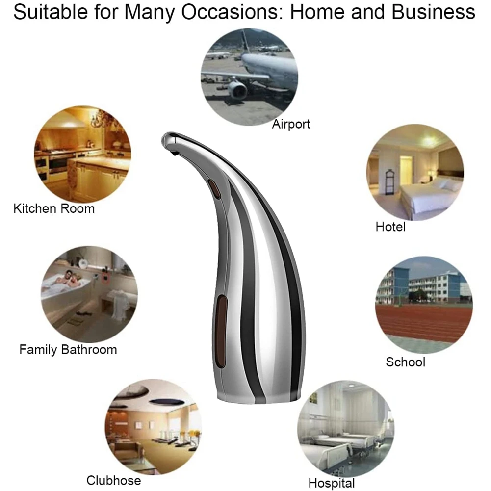 การใช้งาน – ตู้ทําสบู่ใช้พลังงานจากแบตเตอรี่สี่ก้อน (ไม่รวม) โดยไม่จํากัดสายไฟ ทําให้สะดวกในการวางทุกที่เครื่องจ่ายสบู่เหมาะสําหรับร้านอาหาร โรงแรม ห้องครัว ห้องน้ํา โรงพยาบาล ฯลฯ