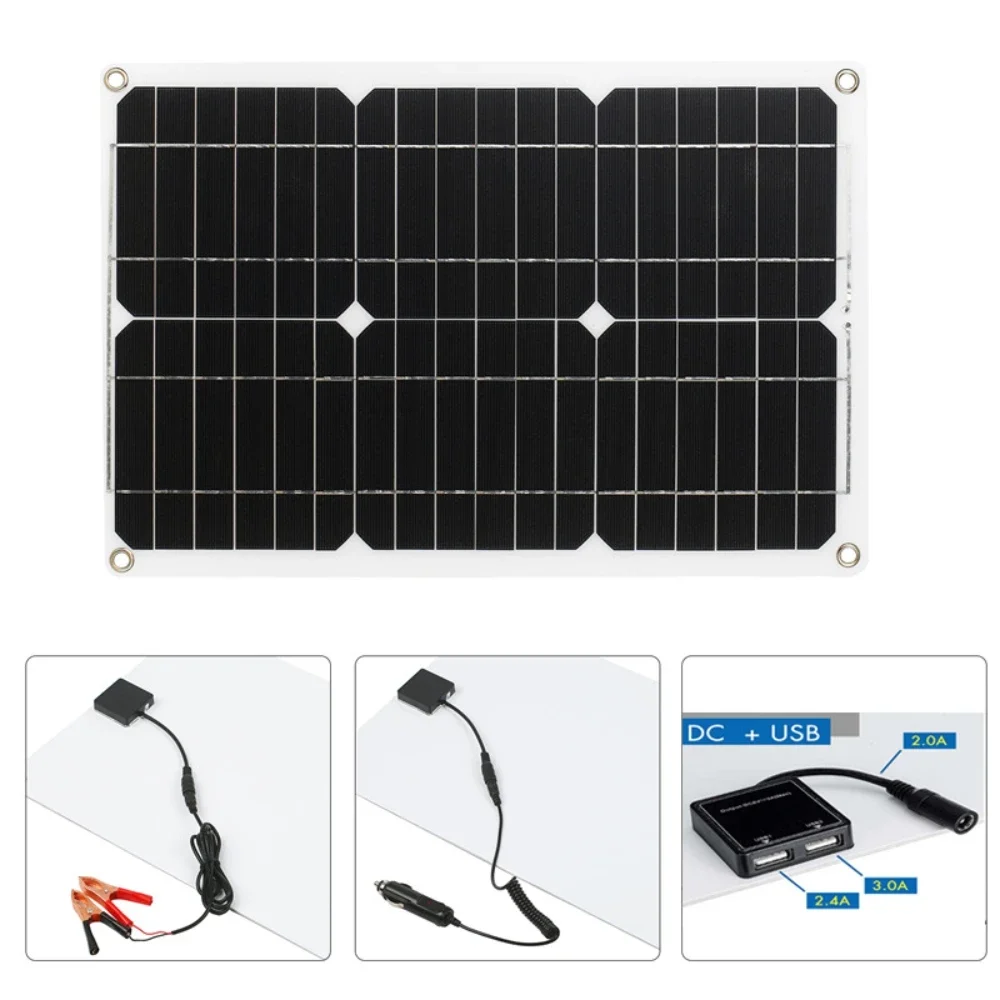 แผงโซลาร์เซลล์ 30 วัตต์ กันน้ำ สำหรับชาร์จโทรศัพท์ รถบ้าน รถยนต์ เครื่องเล่น MP3 แท็บเล็ต ใช้กลางแจ้ง สำรองพลังงานแบตเตอรี่