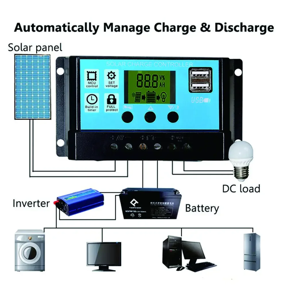 เครื่องควบคุม10A-100A เซลล์แสงอาทิตย์12V แผงโซล่า1000W, แผงเซลล์แสงอาทิตย์สำหรับรถยนต์ RV คาราวานบ้านตั้งแคมป์กลางแจ้งแบตเตอรี่