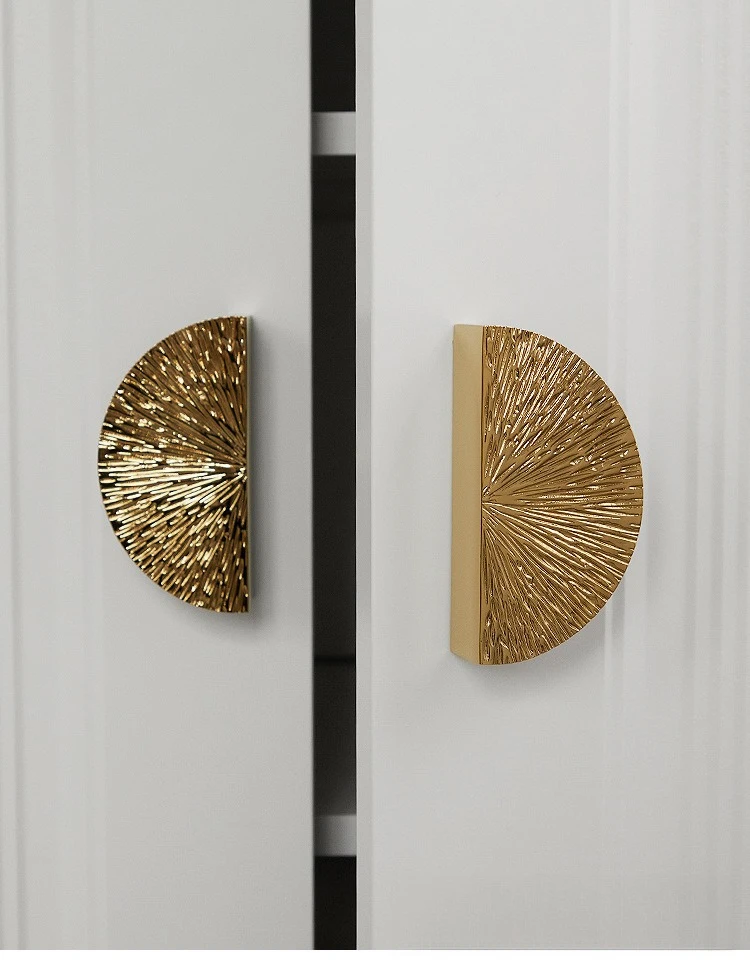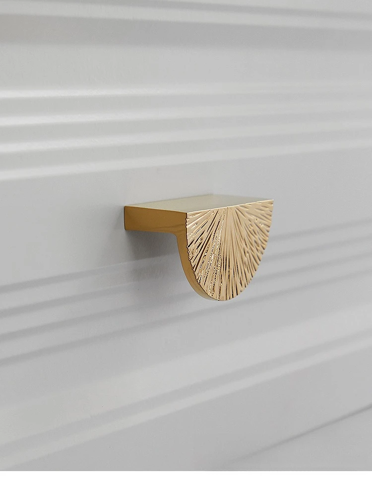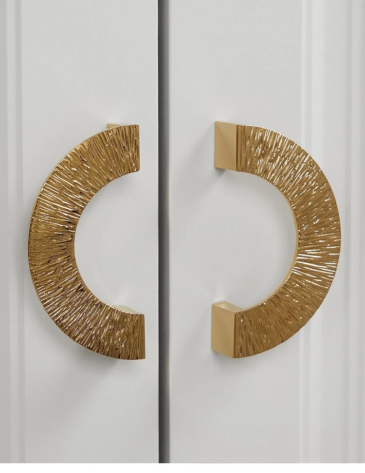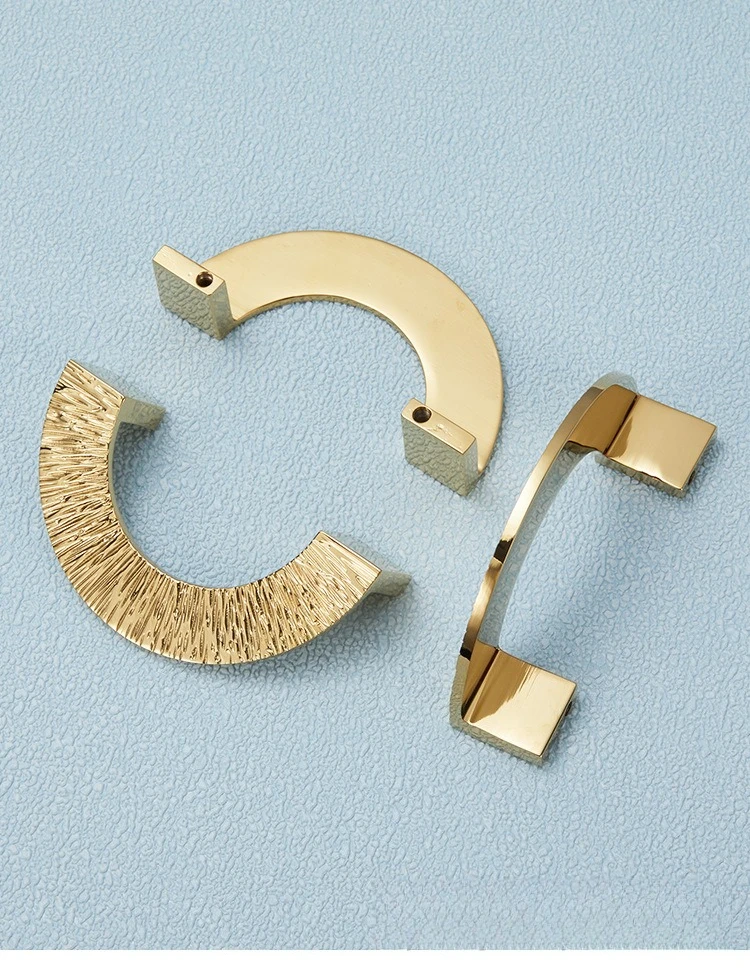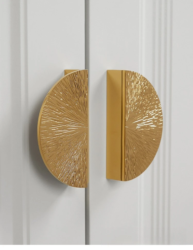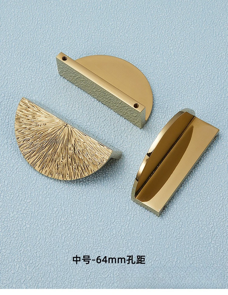 ตัวดึงตู้ครึ่งวงกลมที่ค้อนทองเหลือง – ลิ้นชักและมือจับตู้เสื้อผ้าที่หรูหราน้ําหนักเบาทําจากพื้นผิววินเทจในยุคกลางศตวรรษด้วยไฟฟ้า