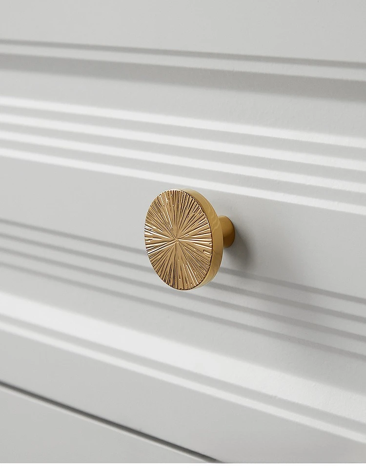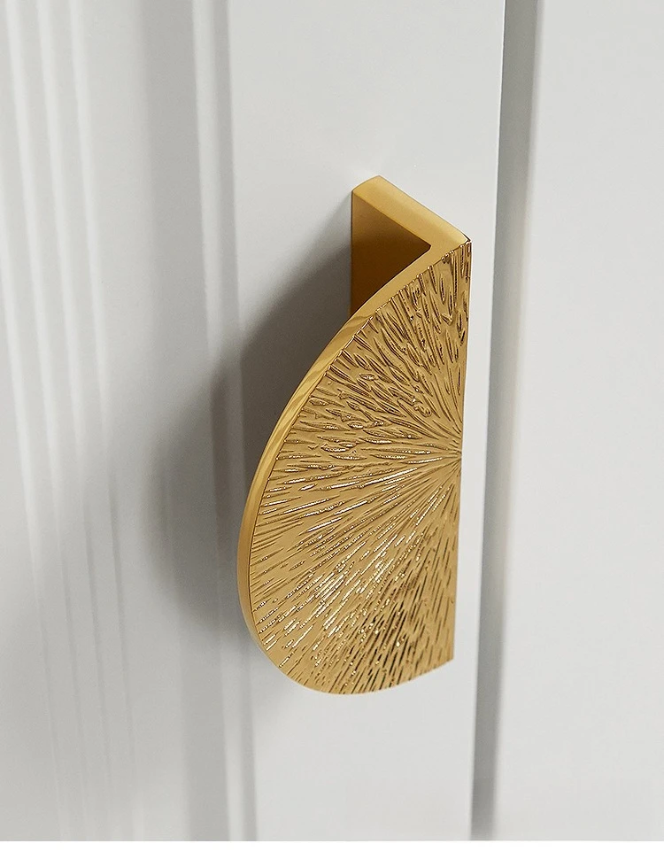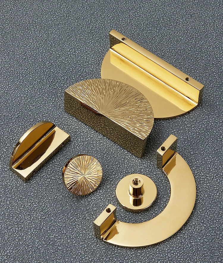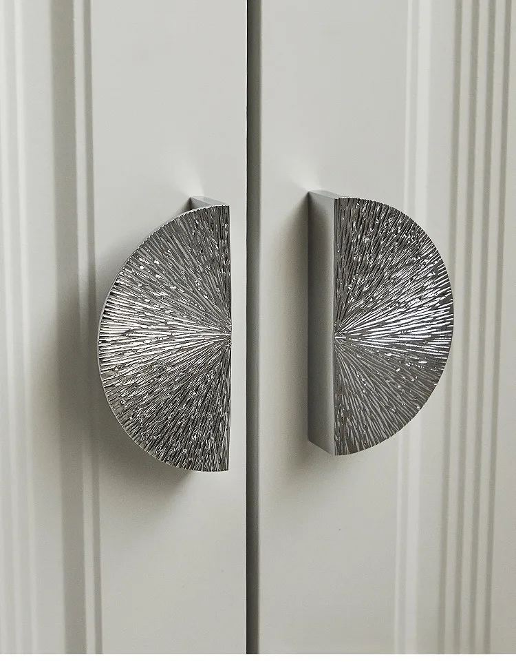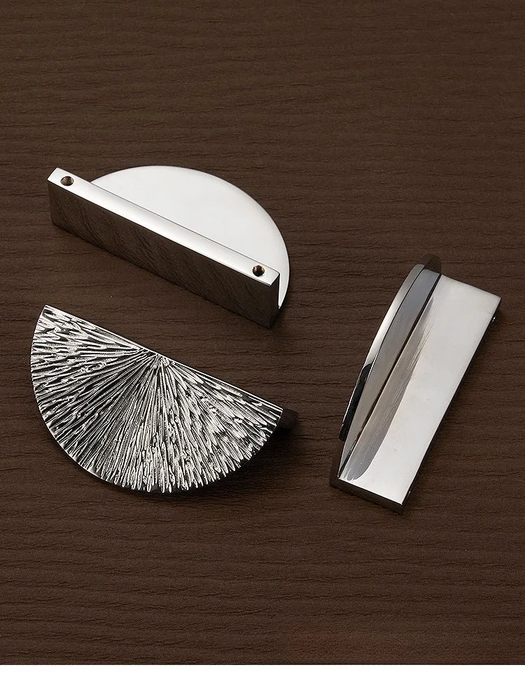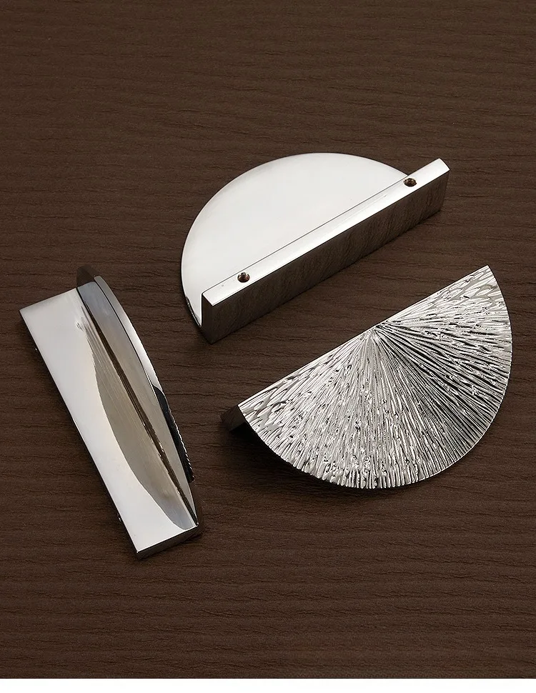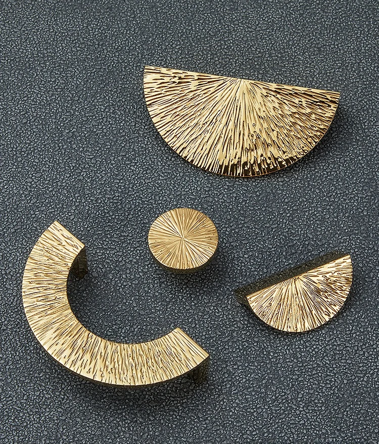 ตัวดึงตู้ครึ่งวงกลมที่ค้อนทองเหลือง – ลิ้นชักและมือจับตู้เสื้อผ้าที่หรูหราน้ําหนักเบาทําจากพื้นผิววินเทจในยุคกลางศตวรรษด้วยไฟฟ้า