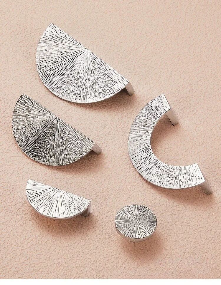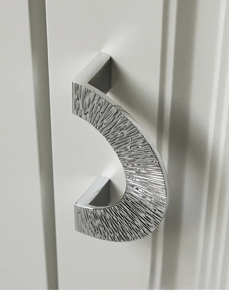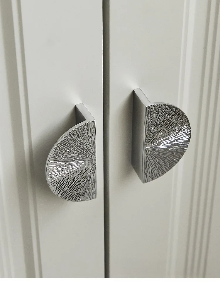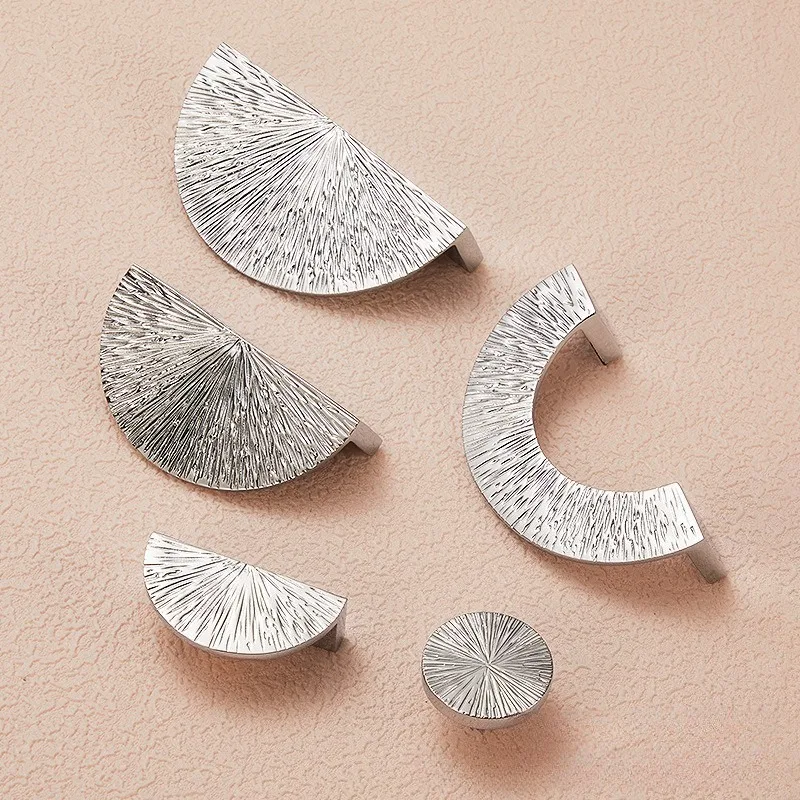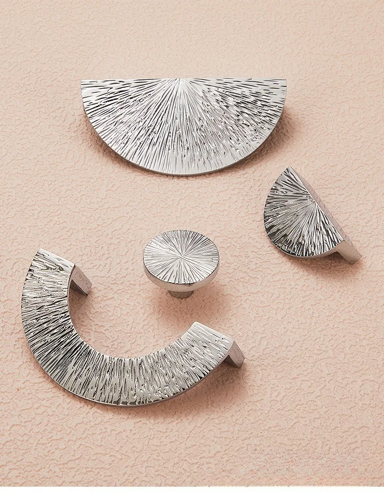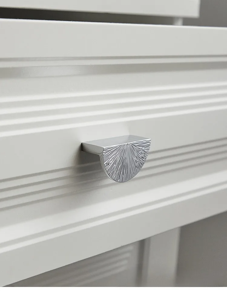 ตัวดึงตู้ครึ่งวงกลมที่ค้อนทองเหลือง – ลิ้นชักและมือจับตู้เสื้อผ้าที่หรูหราน้ําหนักเบาทําจากพื้นผิววินเทจในยุคกลางศตวรรษด้วยไฟฟ้า