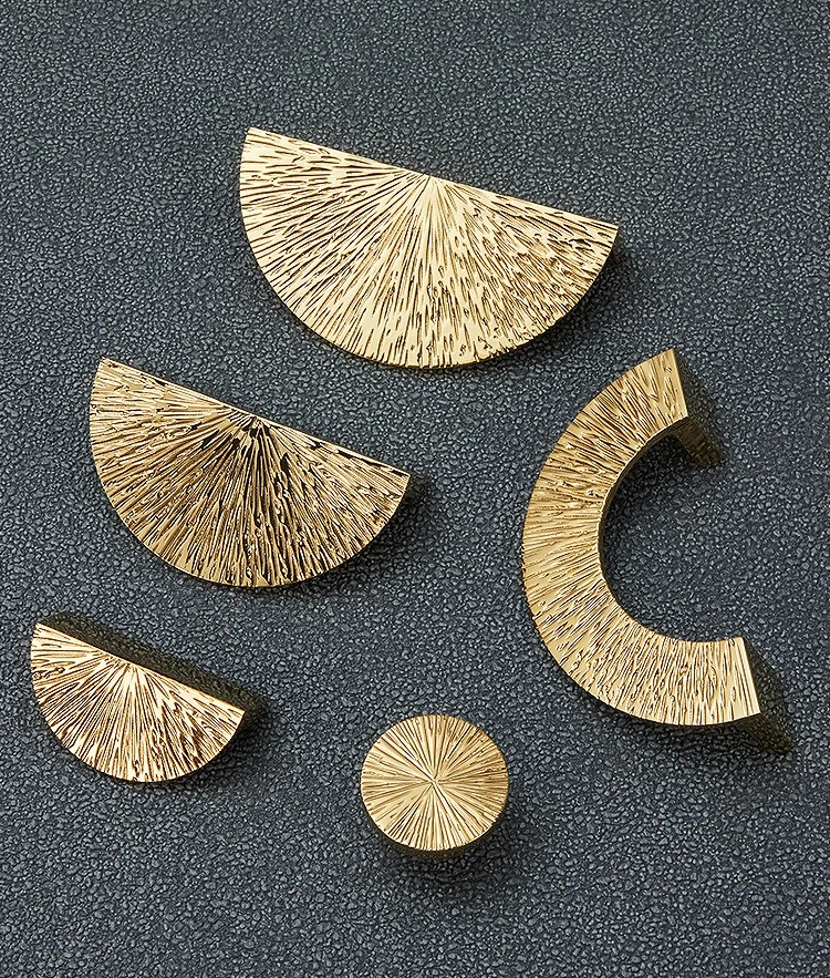 ตัวดึงตู้ครึ่งวงกลมที่ค้อนทองเหลือง – ลิ้นชักและมือจับตู้เสื้อผ้าที่หรูหราน้ําหนักเบาทําจากพื้นผิววินเทจในยุคกลางศตวรรษด้วยไฟฟ้า จาก 1 รีวิว