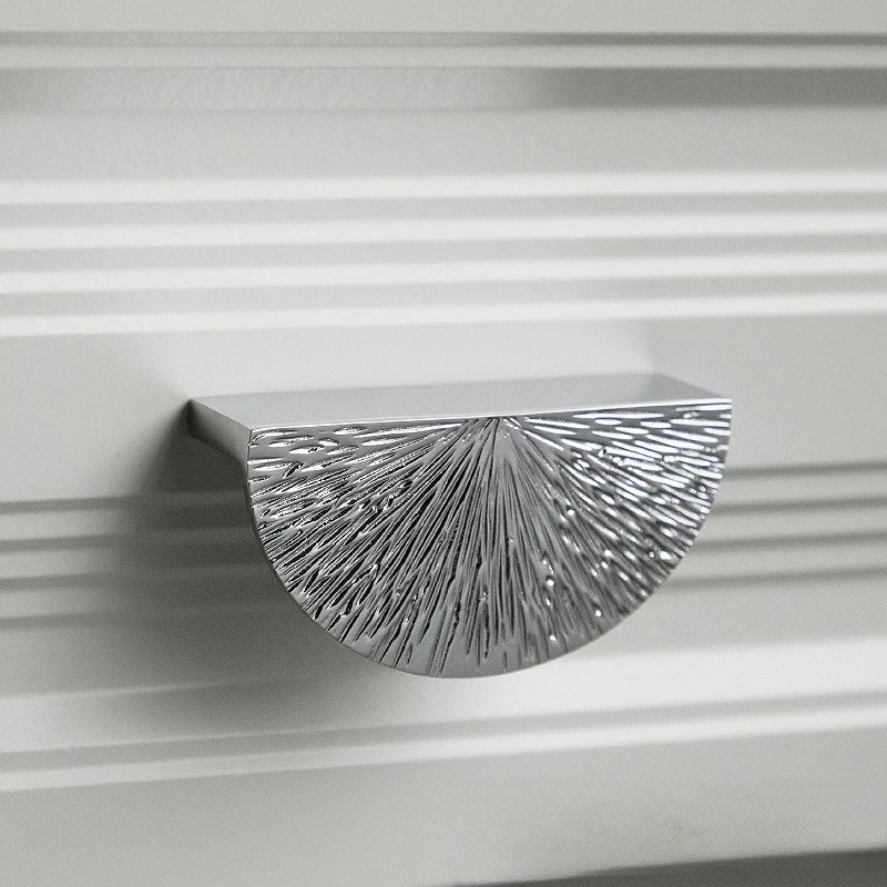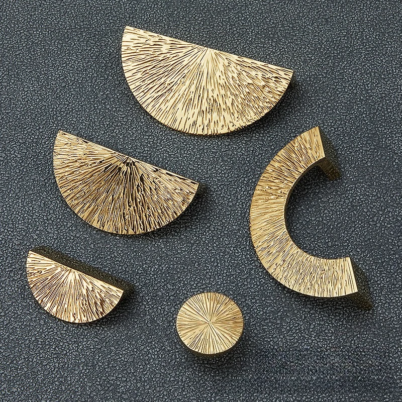 ตัวดึงตู้ครึ่งวงกลมที่ค้อนทองเหลือง – ลิ้นชักและมือจับตู้เสื้อผ้าที่หรูหราน้ําหนักเบาทําจากพื้นผิววินเทจในยุคกลางศตวรรษด้วยไฟฟ้า