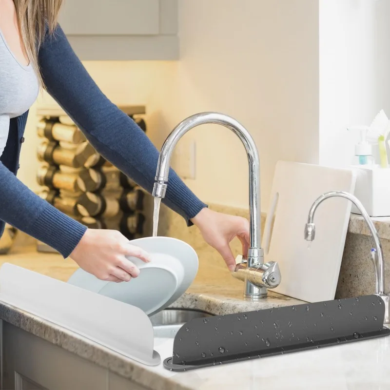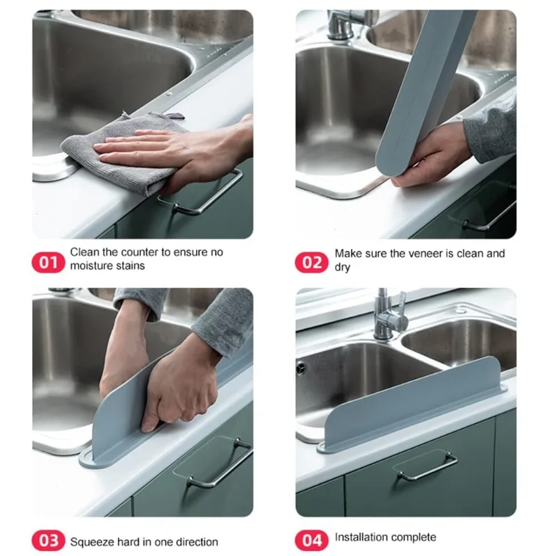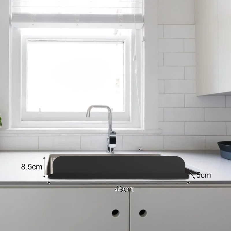 แผ่นกันน้ำกระเด็นซิลิโคนสีดำแบบใช้ซ้ำได้ สำหรับอ่างล้างจาน ป้องกันน้ำกระเด็นบนเคาน์เตอร์ ติดตั้งง่าย