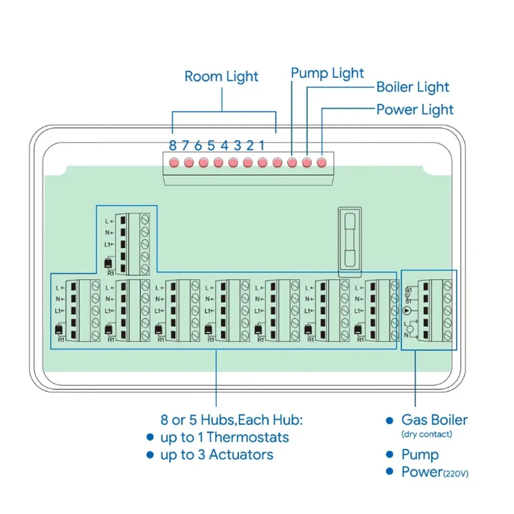 5/8 โซนเครื่องทําความร้อนกลาง Hub Controller ระบบทําความร้อนใต้พื้นสําหรับหม้อต้มแก๊สปั๊มวาล์ว Actuator จาก 2 รีวิว