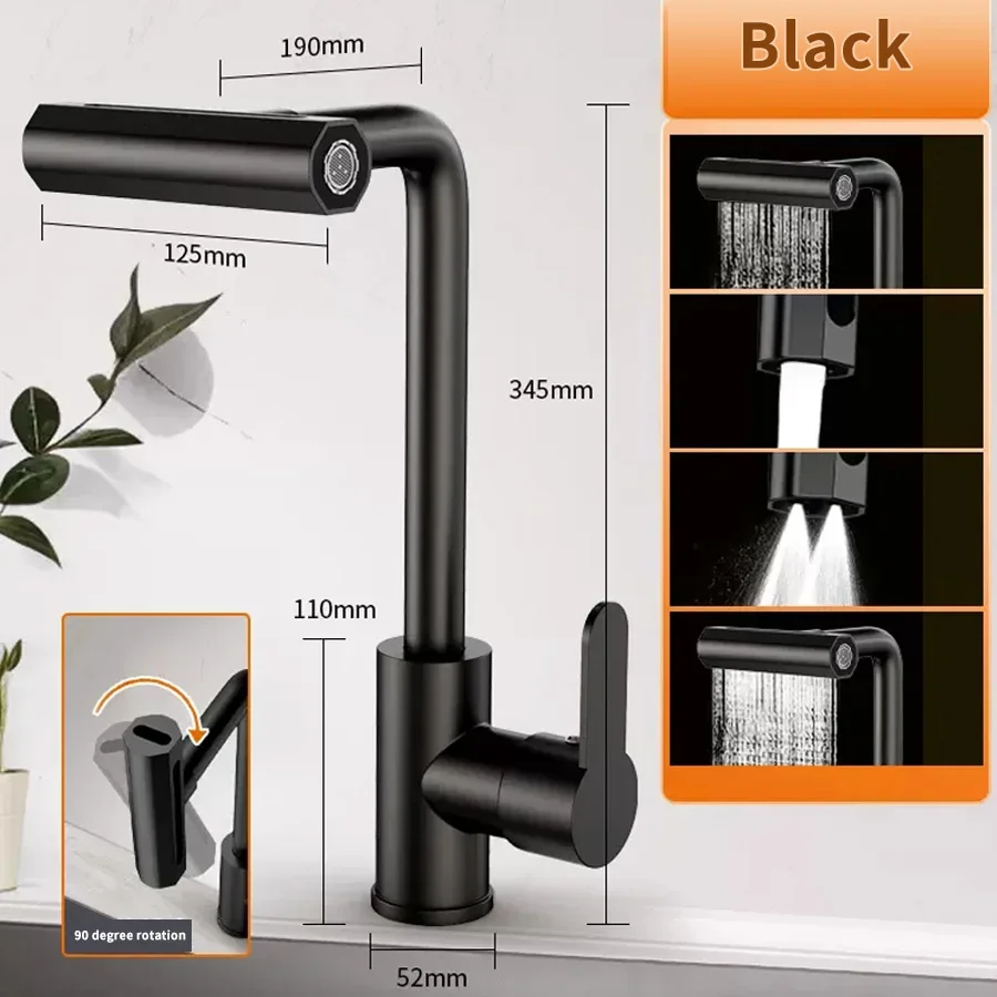 ก๊อกน้ําห้องครัวน้ําตก 4 โหมดสากล 360 ° หมุนสวิงอาร์มสแตนเลสร้อนเย็นหลุมเดียวดาดฟ้าติดอ่างล้างจานแตะ