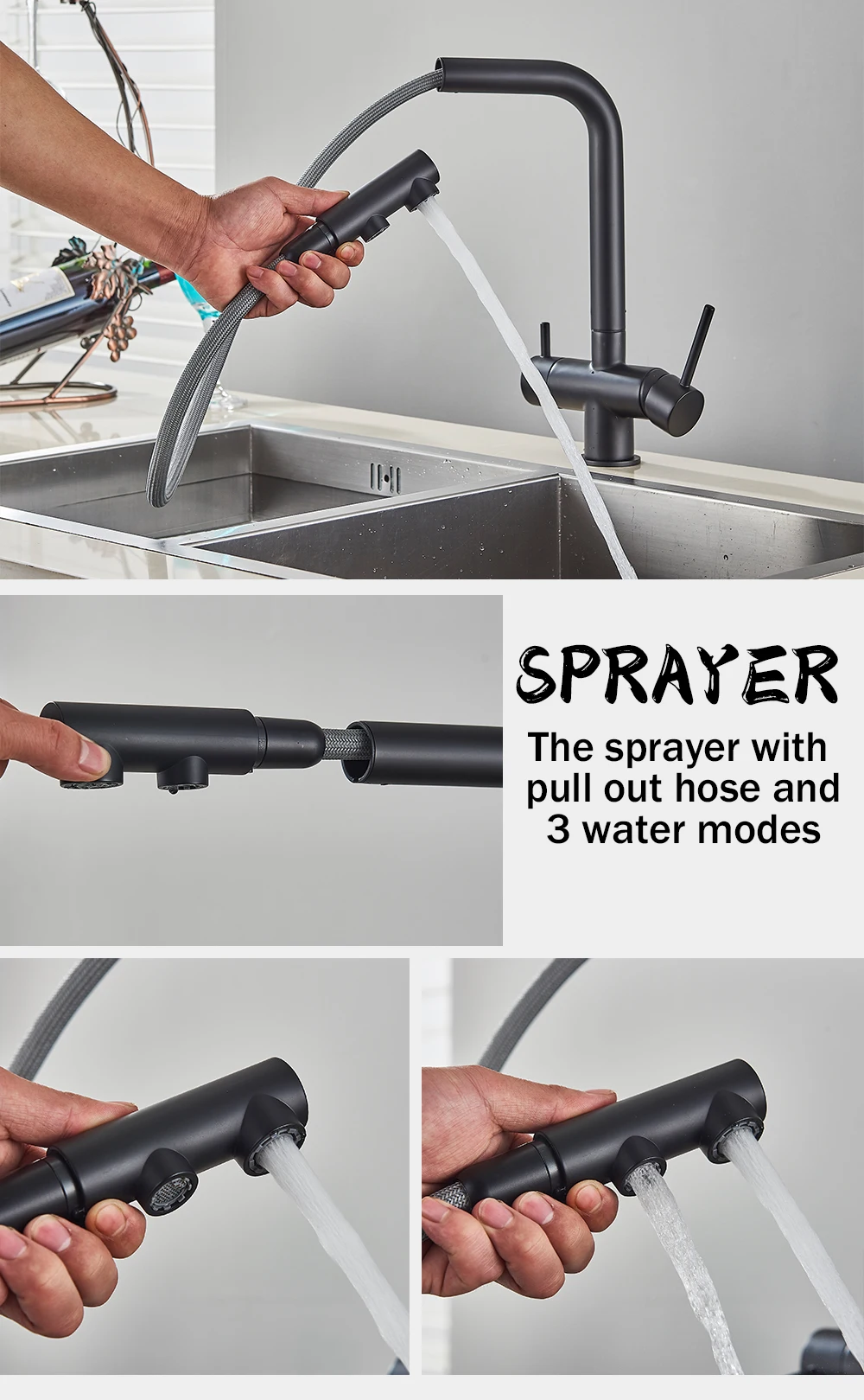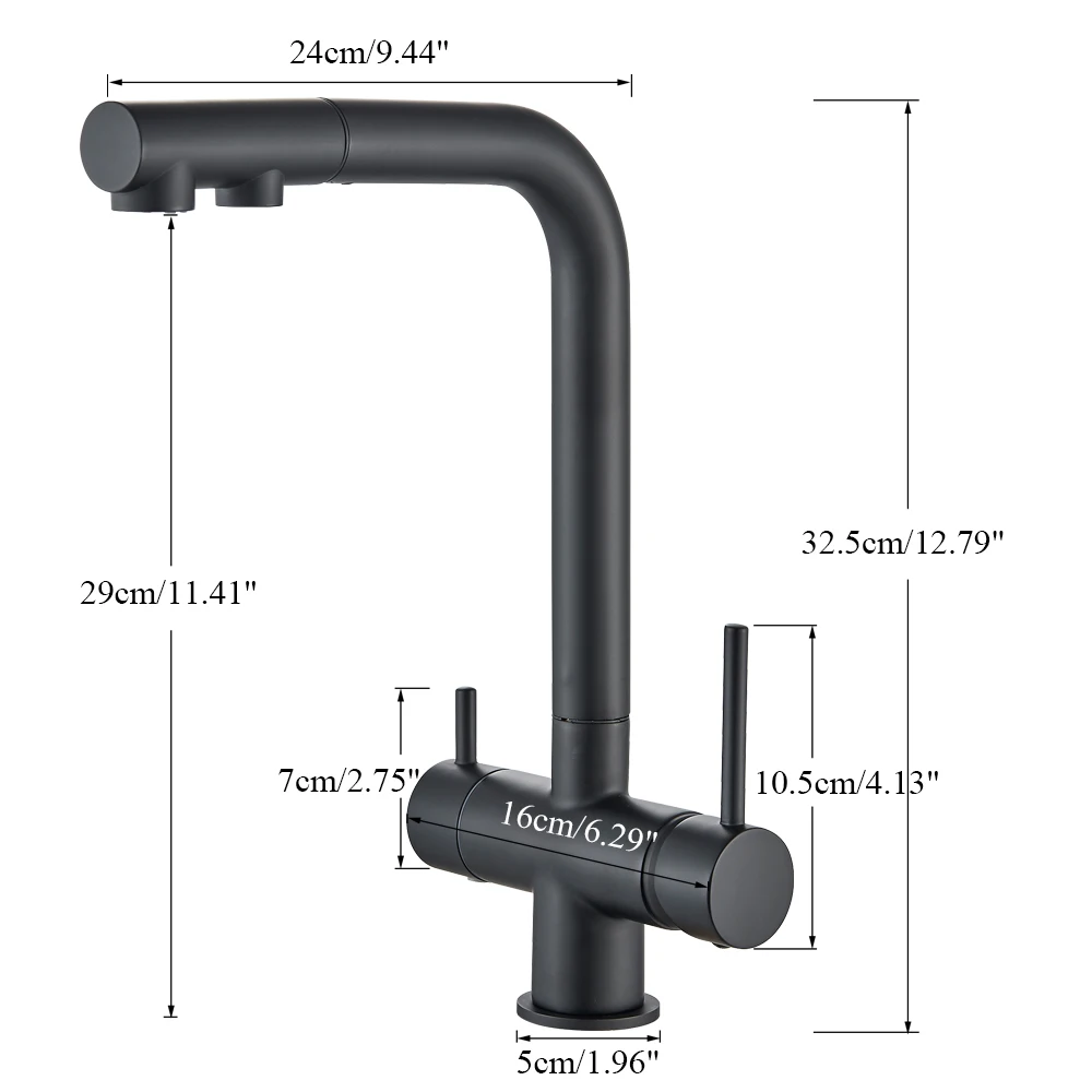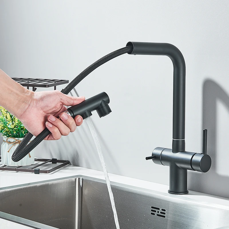 Rozin เครื่องกรองน้ำก๊อกน้ำสำหรับห้องครัวสีดำดึงยืดหยุ่นกรองก๊อกน้ำสำหรับห้องครัว Crane ทองเหลือง2 In 1 Hot เย็นน้ำ Mixer Tap