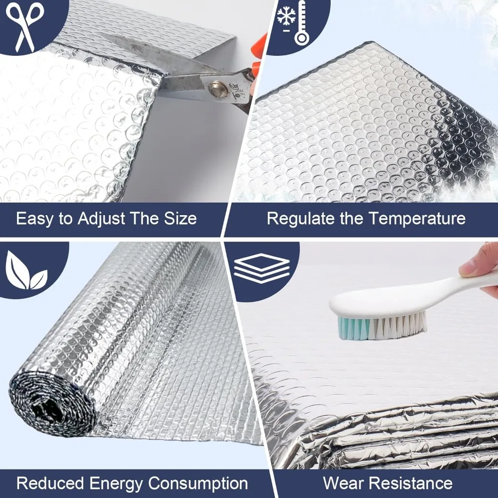 วัสดุที่ดี: ม้วนฉนวนสะท้อนแสงทําจากอลูมิเนียมฟอยล์คู่สะท้อนแสงและวัสดุชนิดฟอง พื้นผิวสะท้อนแสงช่วยป้องกันแสงแดดได้อย่างมีประสิทธิภาพป้องกันความร้อนออกจากหน้าต่าง ฉนวนกันความร้อนในฤดูร้อน ไม่เป็นรอยขีดข่วนง่าย ซึ่งสามารถใช้งานได้นาน