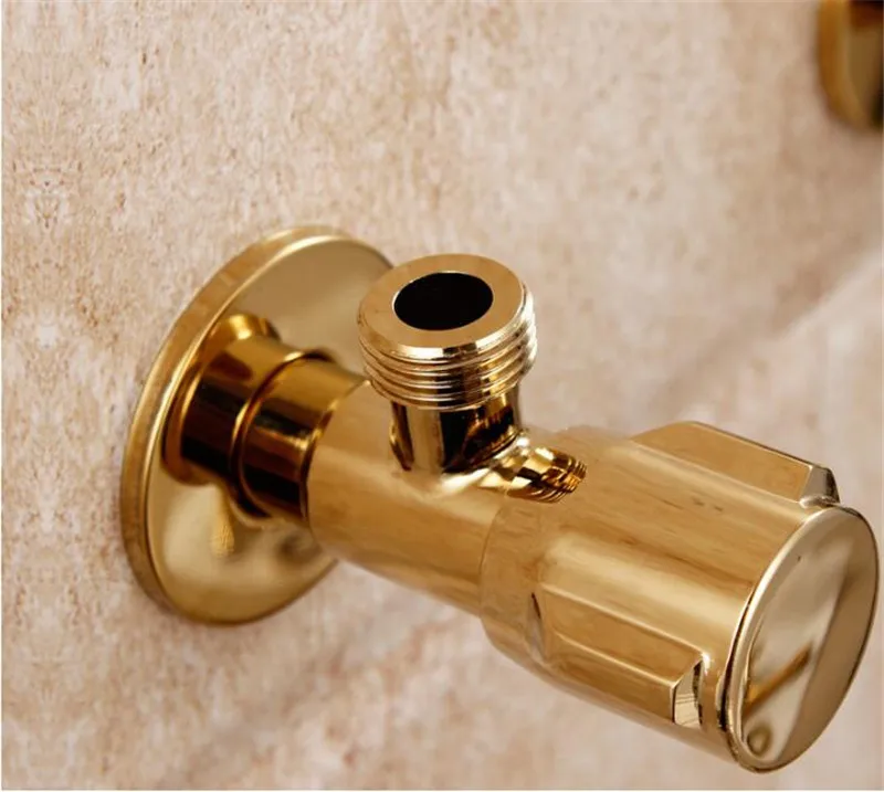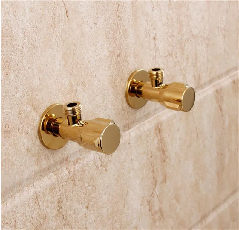 Tuqiu Angle Valve Gold Solid Brass Wall Mount Angle Valve for Toilet Universal Stop Water Triangle Valve for Faucet and Toilet