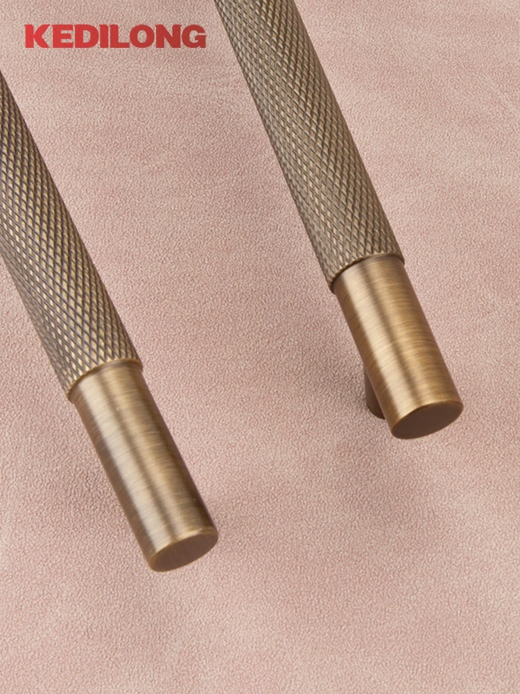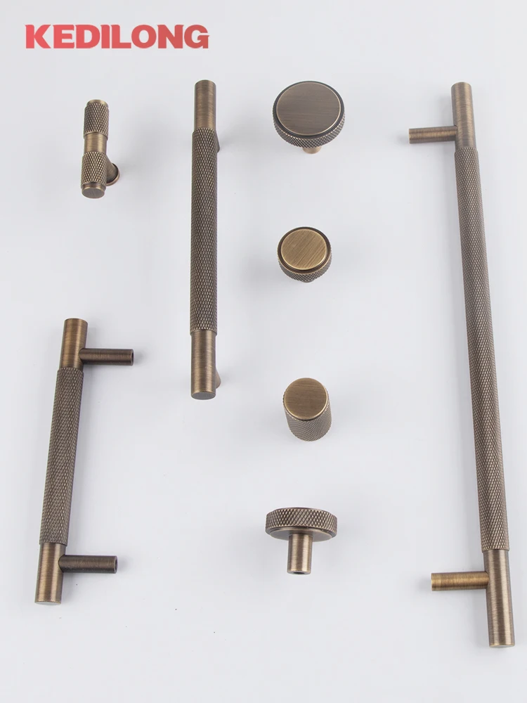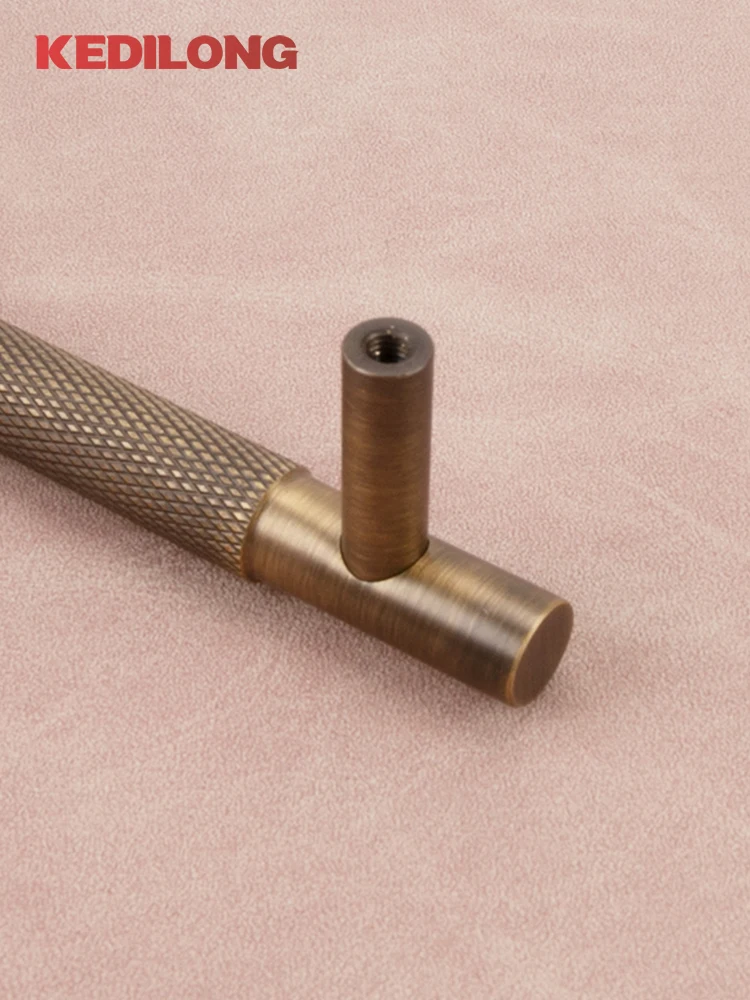 มือจับทองเหลืองแท้สไตล์ยุโรปแบบเรโทรลายกนูลิงสำหรับตู้ครัว มือจับรูปตัว T สีทองเหลืองโบราณ มือจับลิ้นชักทองแดงแบบยาว