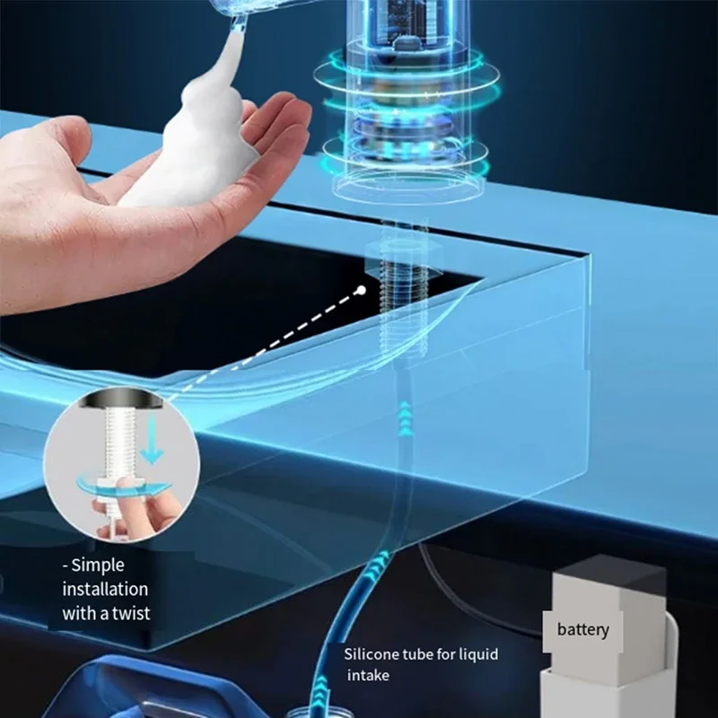 เครื่องจ่ายสบู่อัตโนมัติแบบติดตั้งบนเคาน์เตอร์ อ่างล้างหน้า พร้อมเซ็นเซอร์อินฟราเรด สำหรับห้องน้ำและใช้ในครัวเรือน