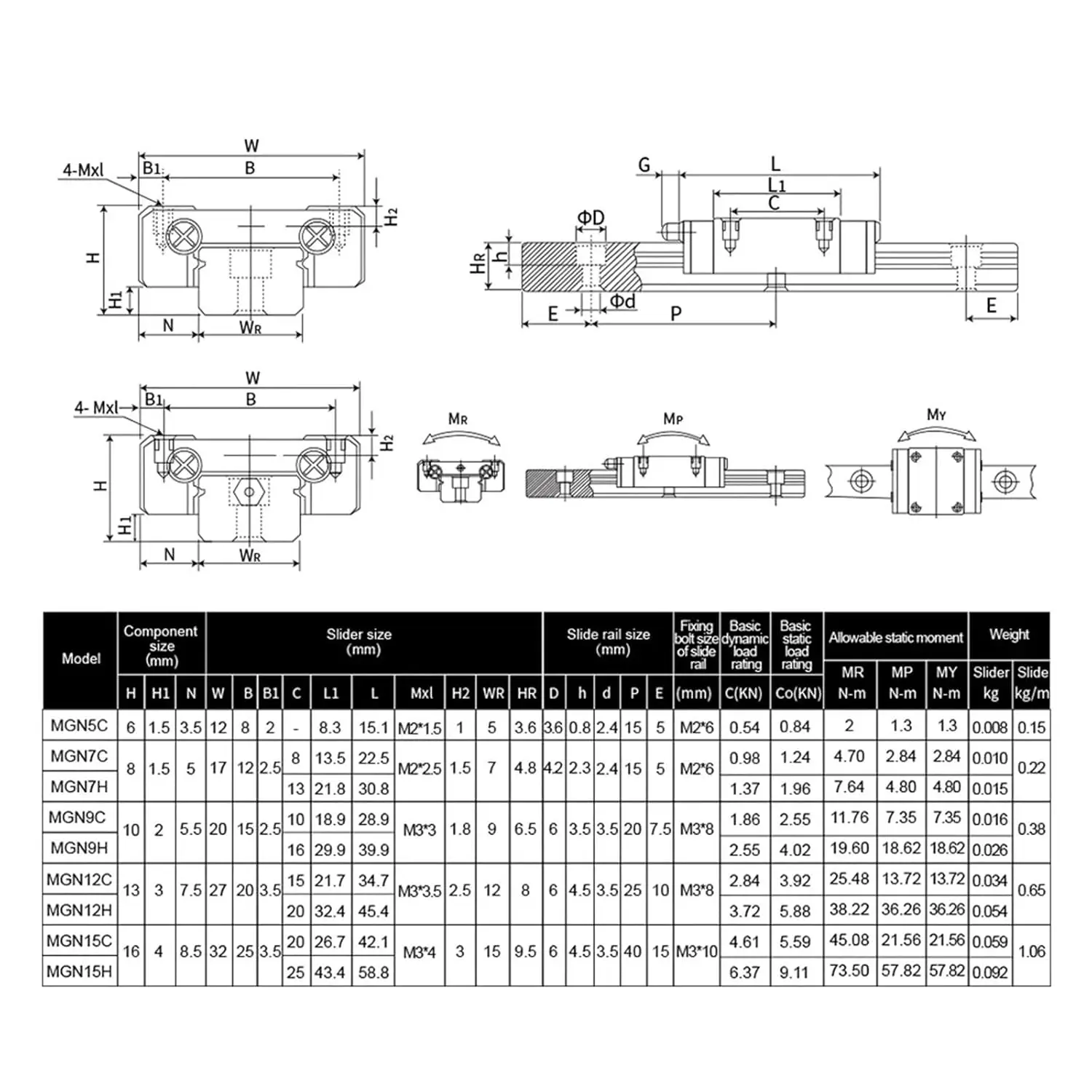 | Model Number | MGN7H MGN12H MGN15H MGN9H MGN7C MGN12C MGN15C MGN9C |