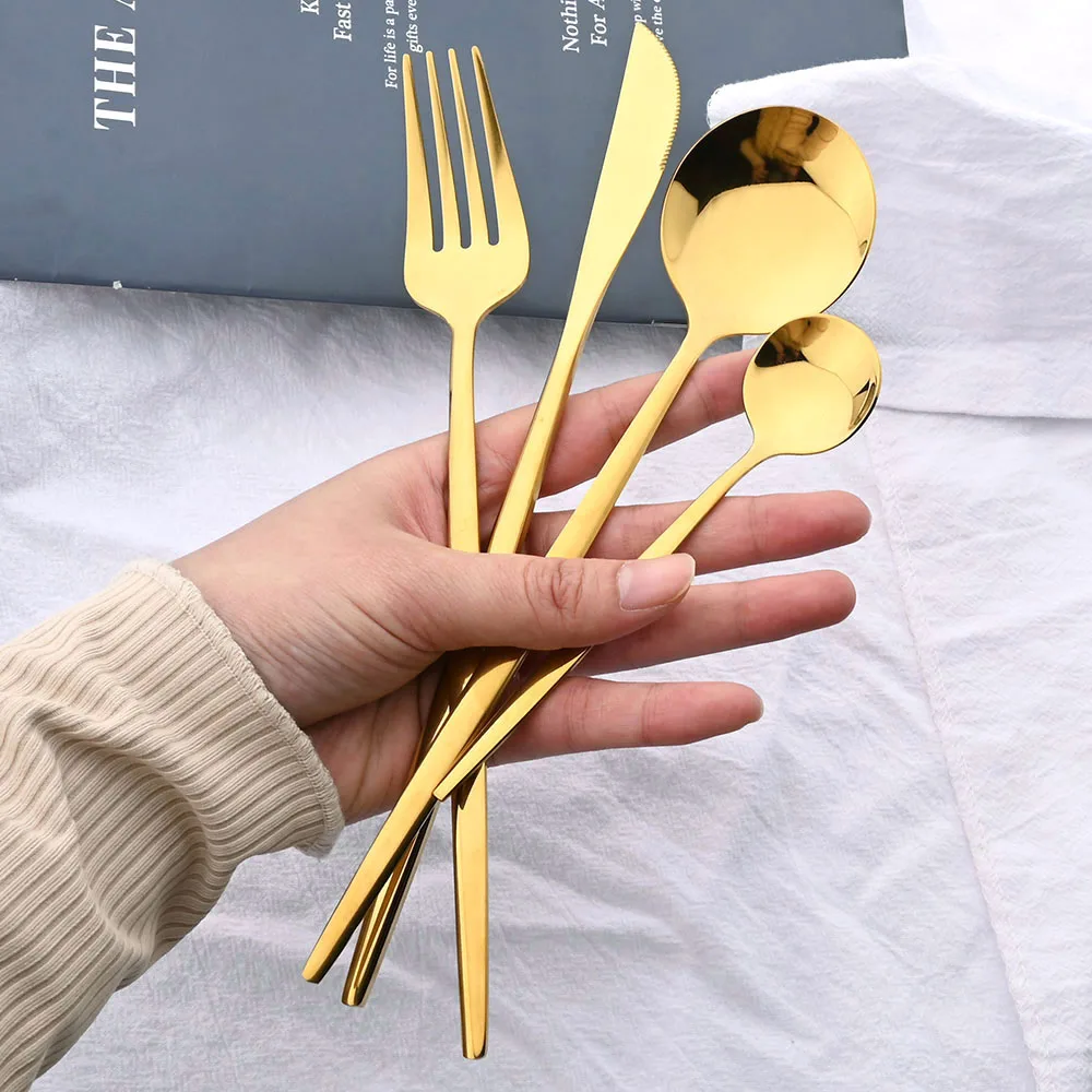 24 ชิ้นสีดํา Golden ชุดช้อนส้อมสแตนเลสมีดช้อนส้อมบนโต๊ะอาหาร Flatware ชุดเทศกาลครัวอาหารเย็นของขวัญ