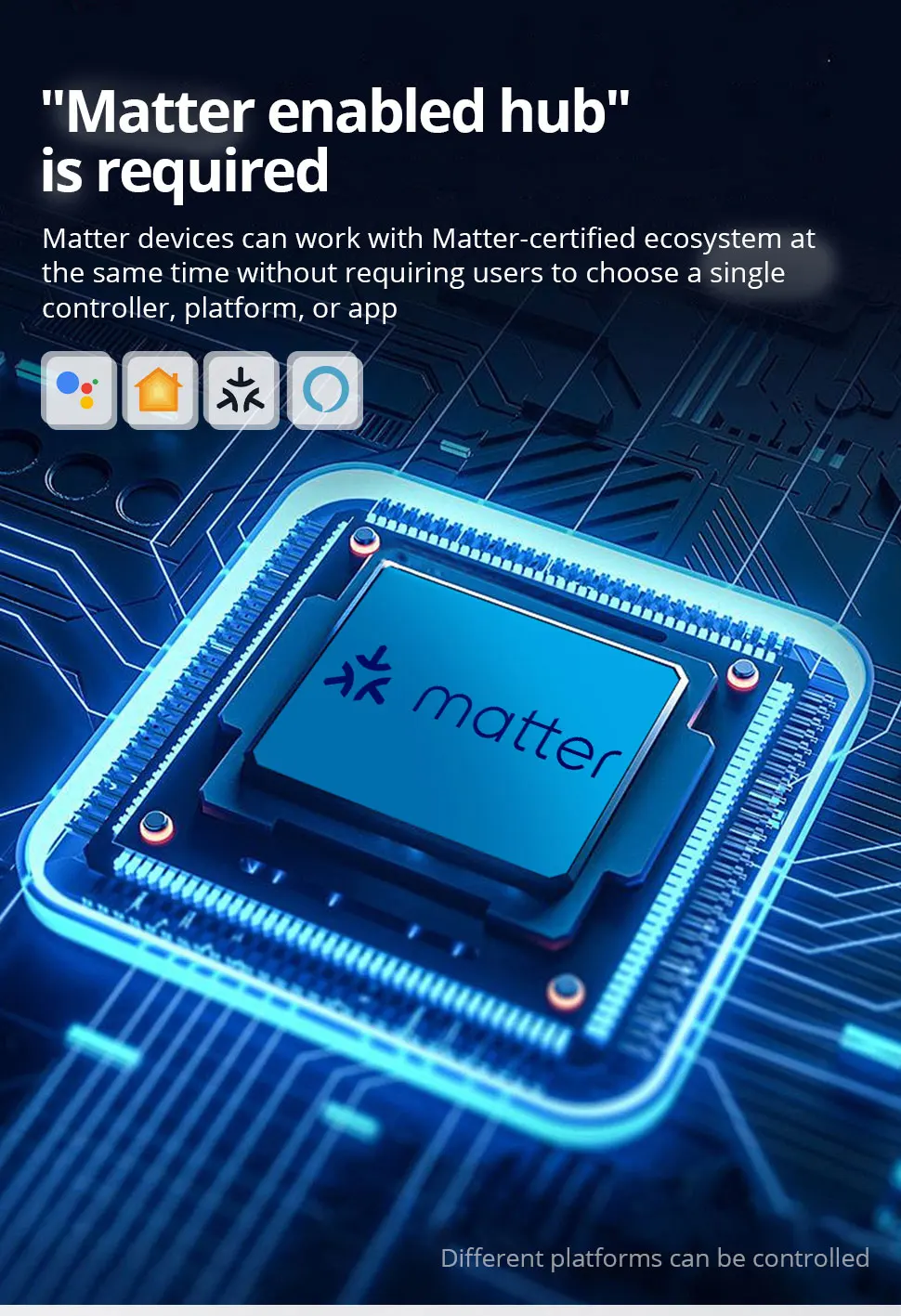 – จําเป็นต้องมี ‘ฮับที่เปิดใช้งาน Matter’ เพื่อเพิ่ม Matter Devices นี้ลงในแอป ‘Homekit/Alexa/Google Home’ เครือข่าย WiFi ที่กําหนดค่าและฮับที่ใช้ Matter ต้องอยู่ในเครือข่ายท้องถิ่น (LAN) เดียวกัน