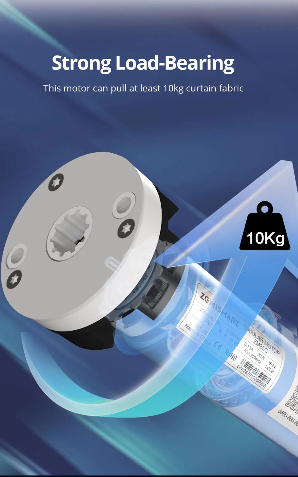 – รับน้ําหนักได้ดี: มอเตอร์นี้สามารถดึงผ้าม่านได้อย่างน้อย 10 กก.