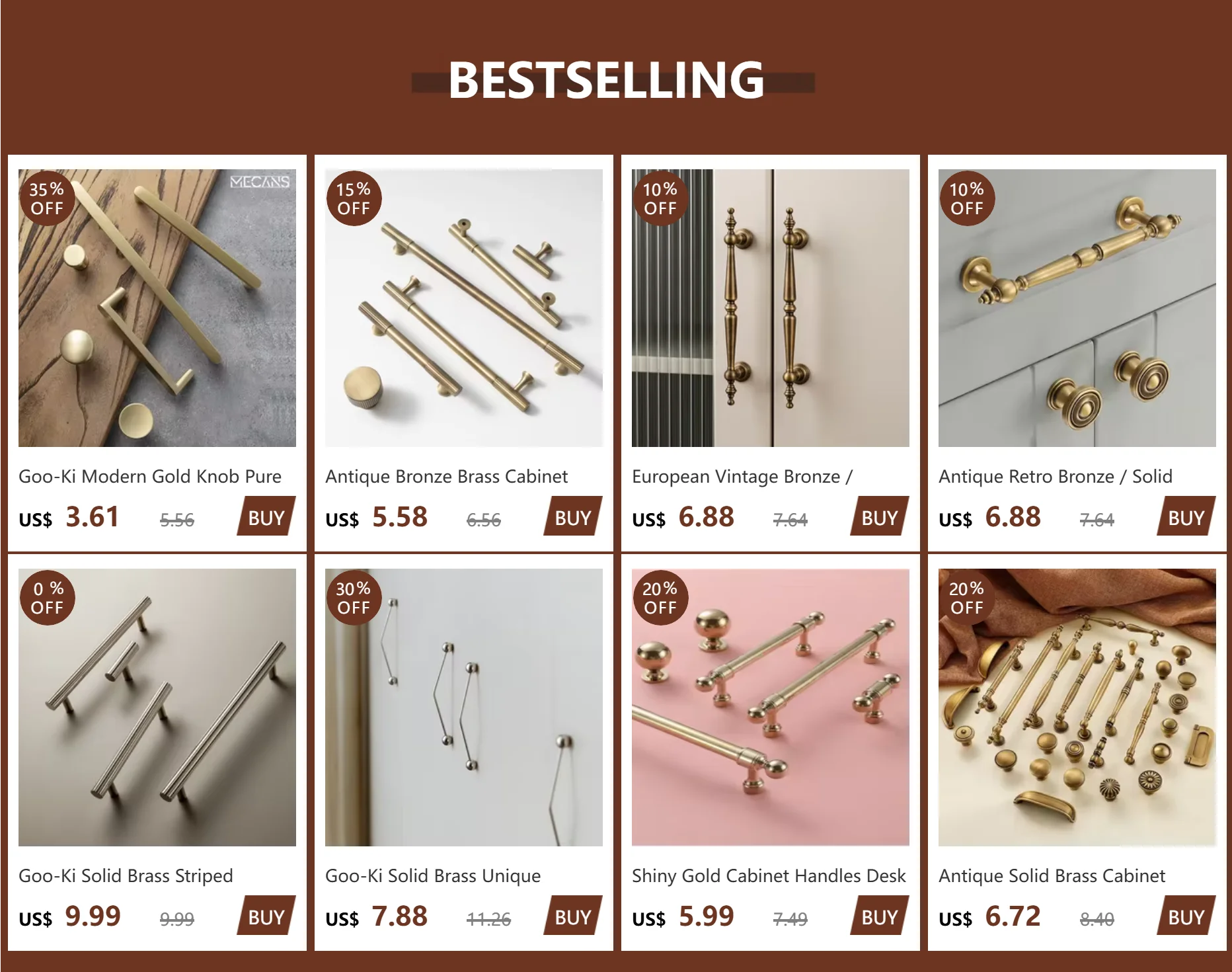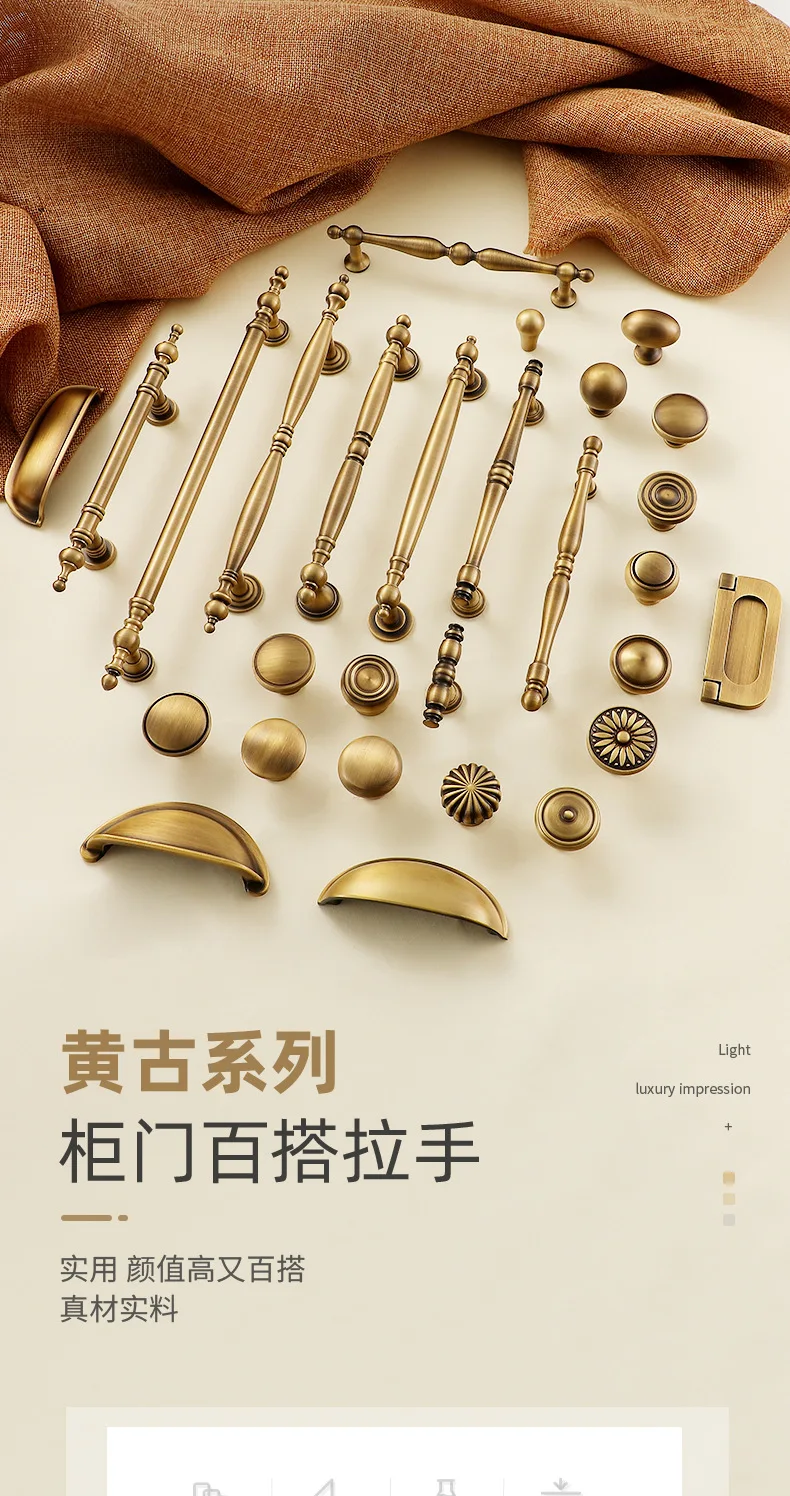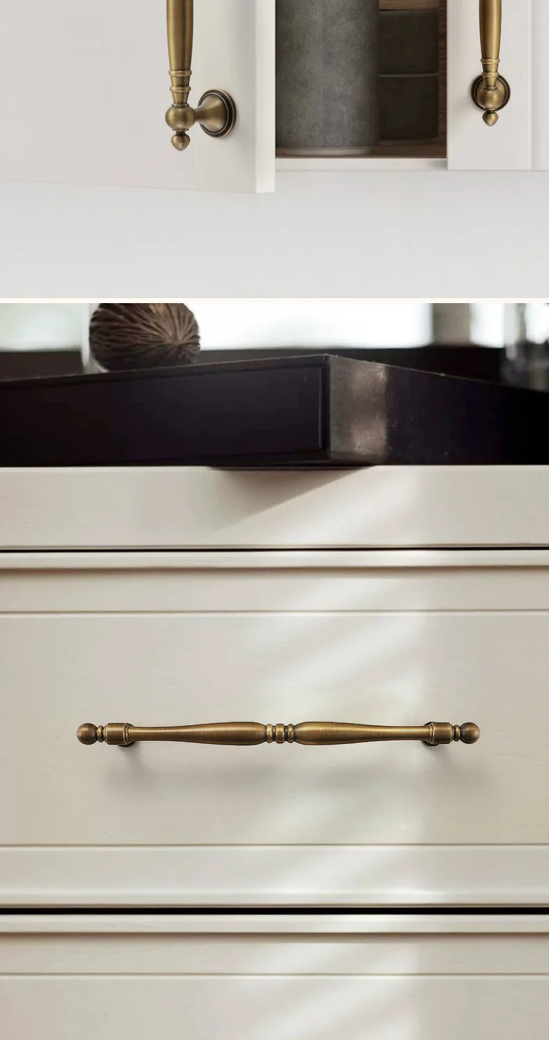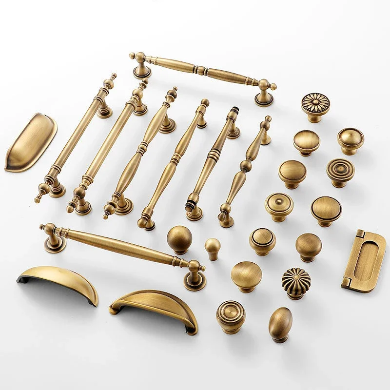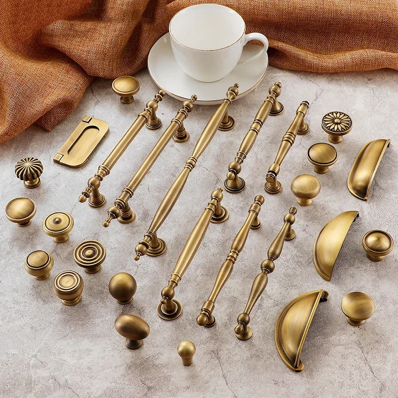 ทองเหลืองโบราณตู้จับ Vintage ถ้วยดึง Retro LuxuryT บาร์จับอีกต่อไปลิ้นชักห้องครัวเฟอร์นิเจอร์ฮาร์ดแวร์