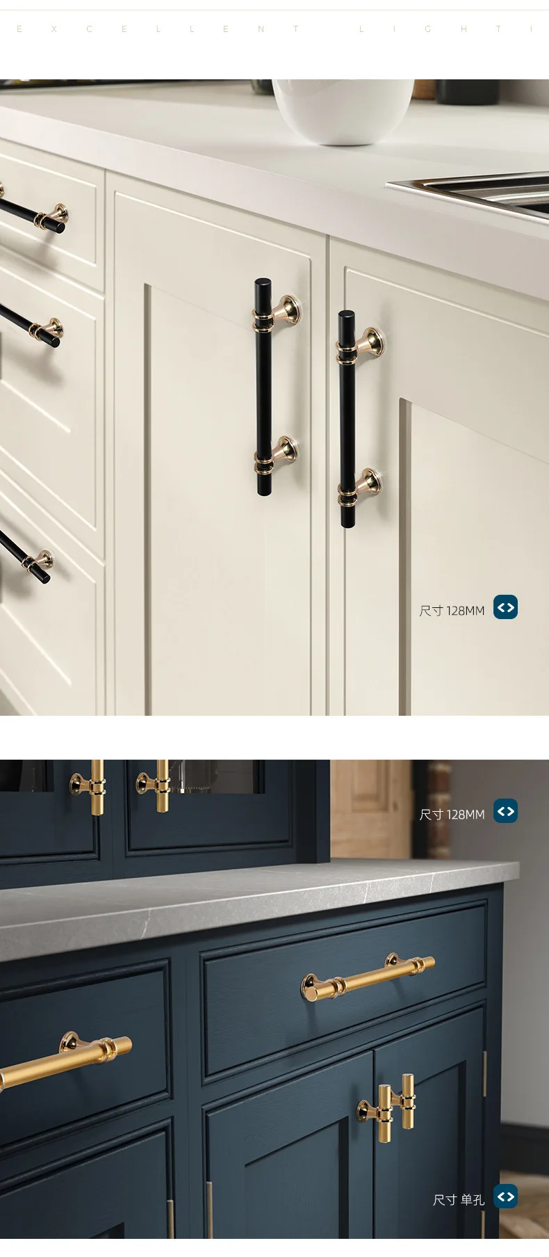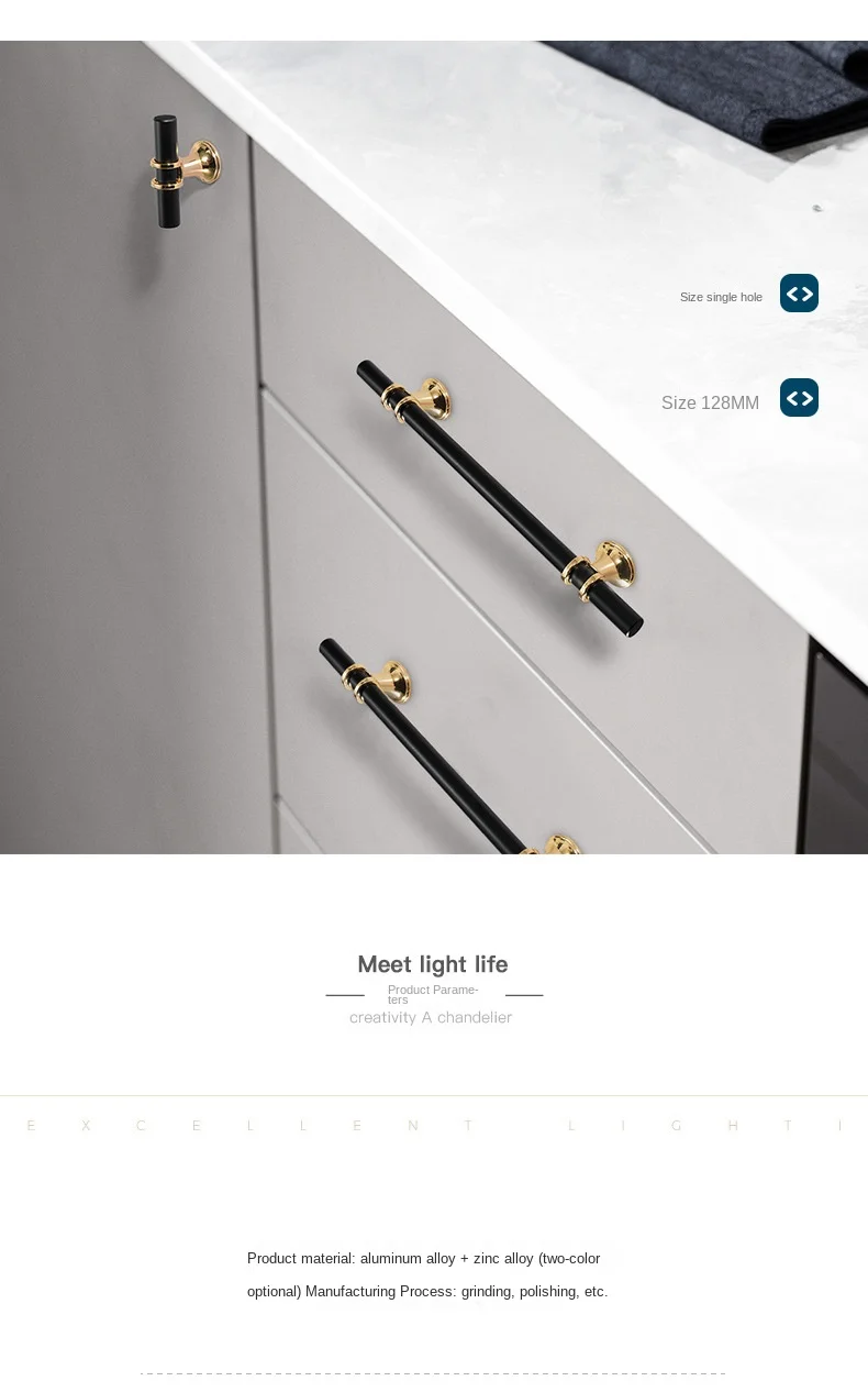 ลิ้นชักตู้ Knob เฟอร์นิเจอร์ตู้เสื้อผ้า T บาร์ห้องครัวตู้ฮาร์ดแวร์สีดำทองโลหะผสมสังกะสีเฟอร์นิเจอร์ลิ้นชัก