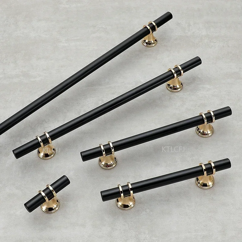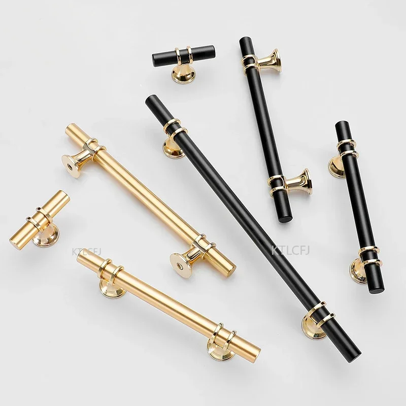 ลิ้นชักตู้ Knob เฟอร์นิเจอร์ตู้เสื้อผ้า T บาร์ห้องครัวตู้ฮาร์ดแวร์สีดำทองโลหะผสมสังกะสีเฟอร์นิเจอร์ลิ้นชัก