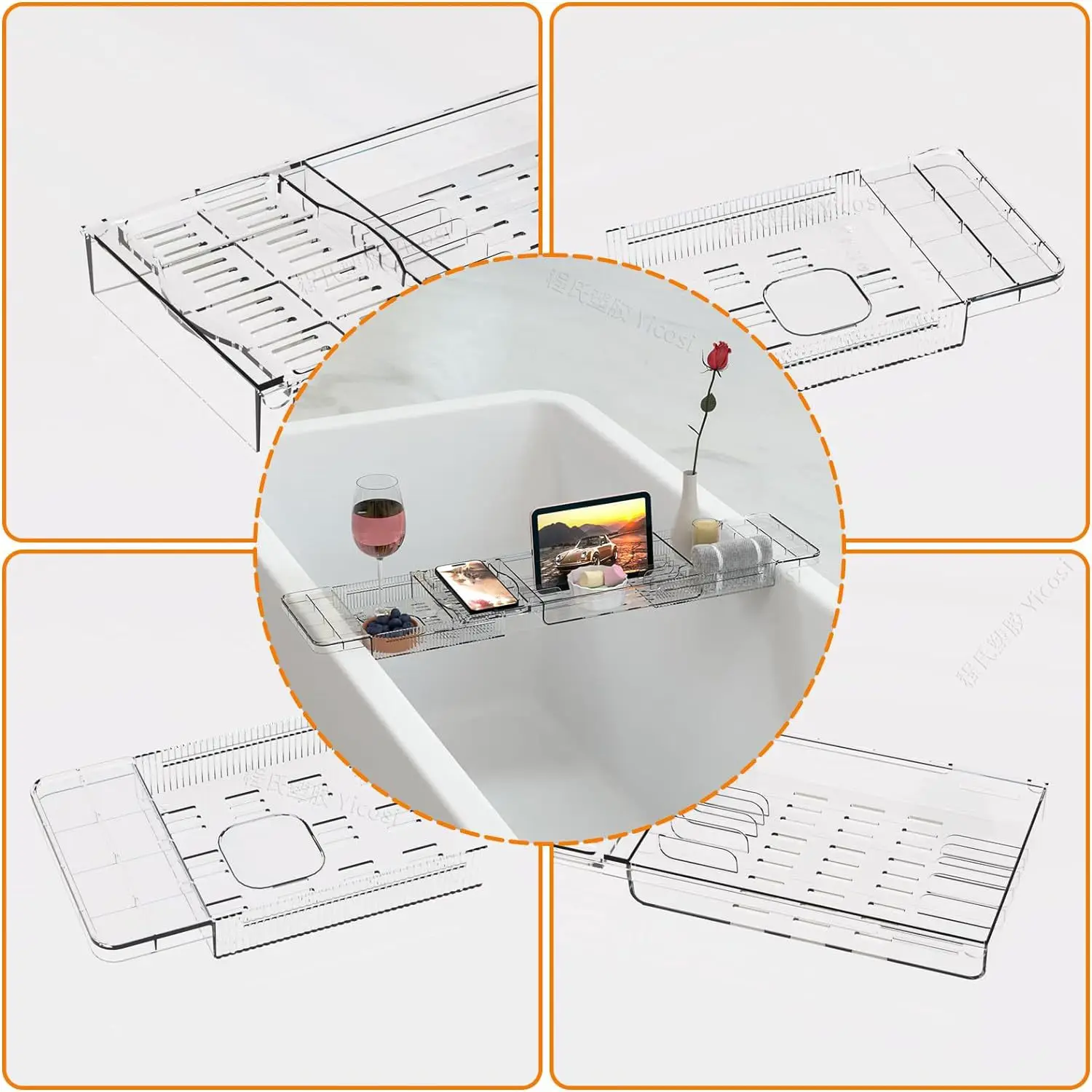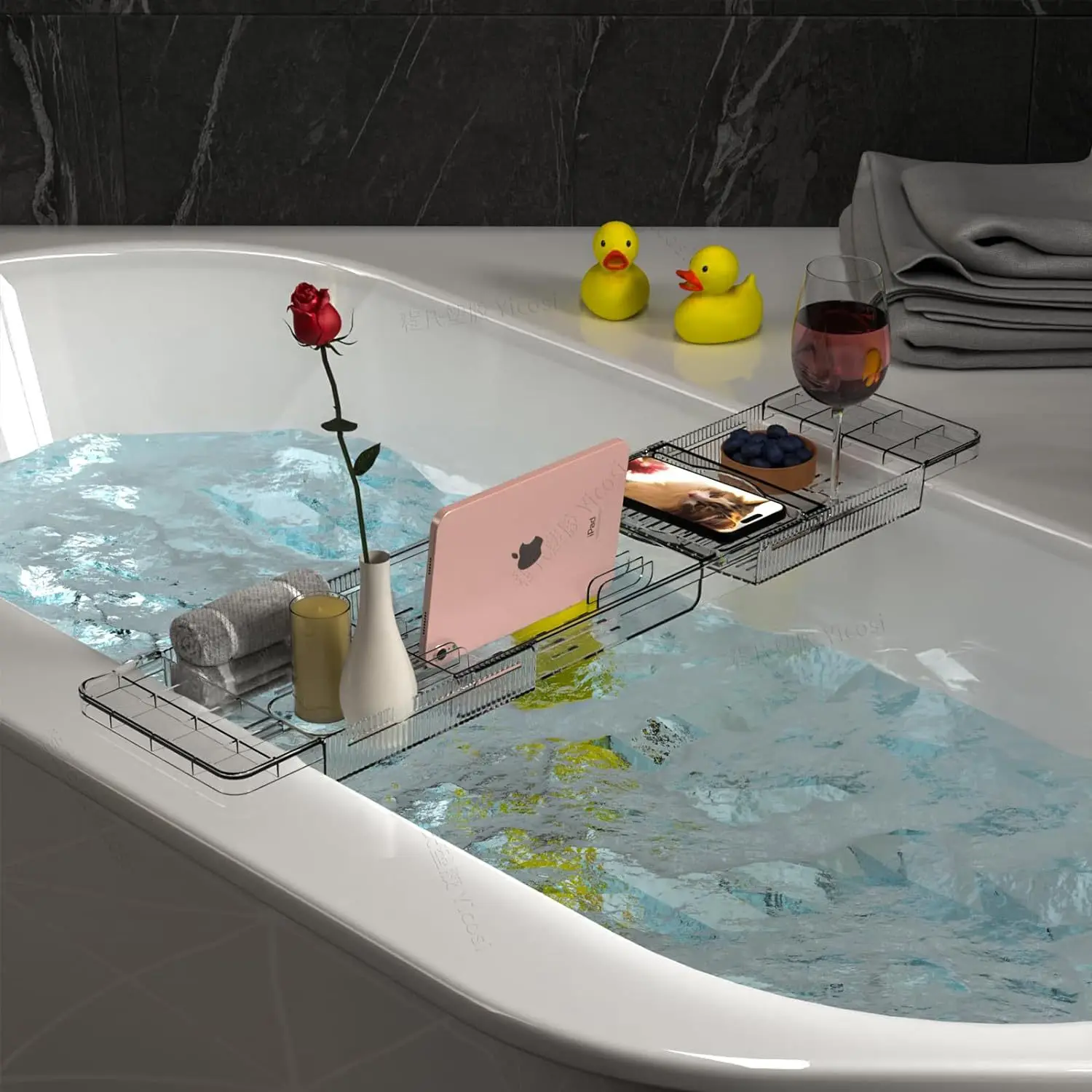 ชั้นเก็บอ่างอาบน้ํา ห้องน้ํา ชั้นวางท่อระบายน้ําแบบพับเก็บได้ กระดานเก็บ ถาดอาบน้ํา
