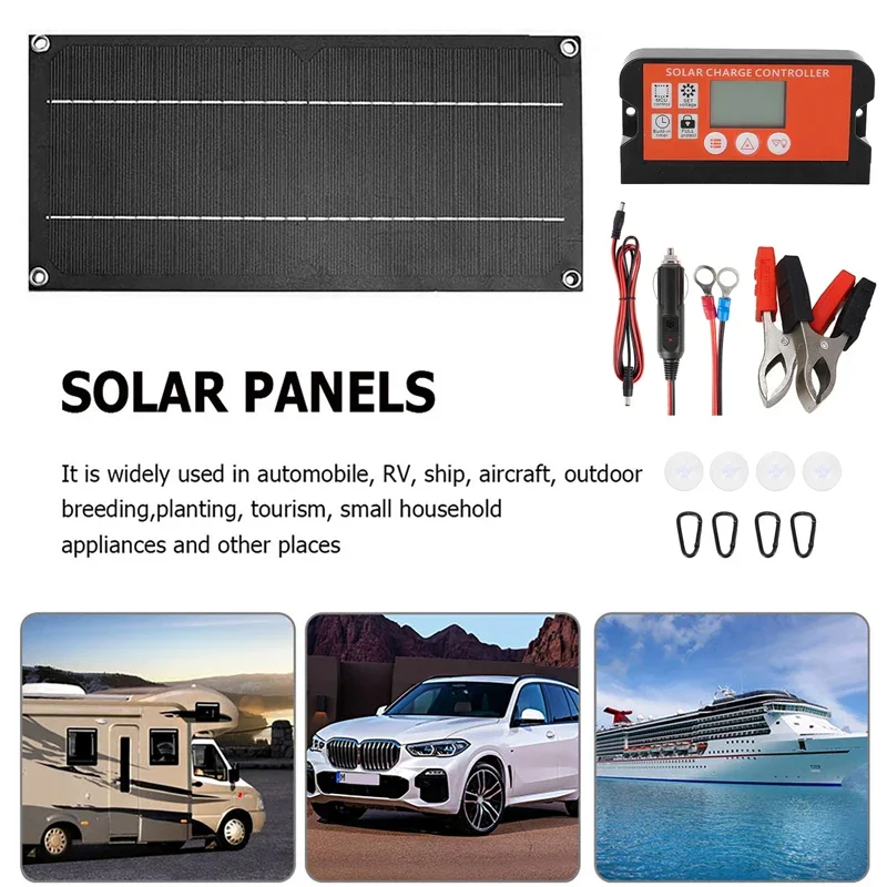 4.การใช้งานหลากหลาย: แผงโซลาร์เซลล์ชาร์จนี้เหมาะสำหรับแบตเตอรี่รถยนต์, รถยนต์, เรือ, เครื่องบิน, การเกษตรกลางแจ้ง, การปลูกพืช, การท่องเที่ยว, โคมไฟถนนพลังงานแสงอาทิตย์ และอื่นๆ