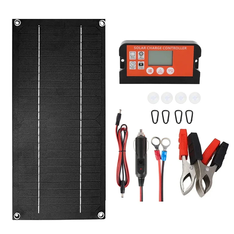 ชุดแผงโซลาร์เซลล์ 60W ครบชุด 18V โมโนคริสตัลไลน์ พร้อมตัวควบคุมการชาร์จ สำหรับการตั้งแคมป์กลางแจ้ง ปีนเขา และการเกษตร