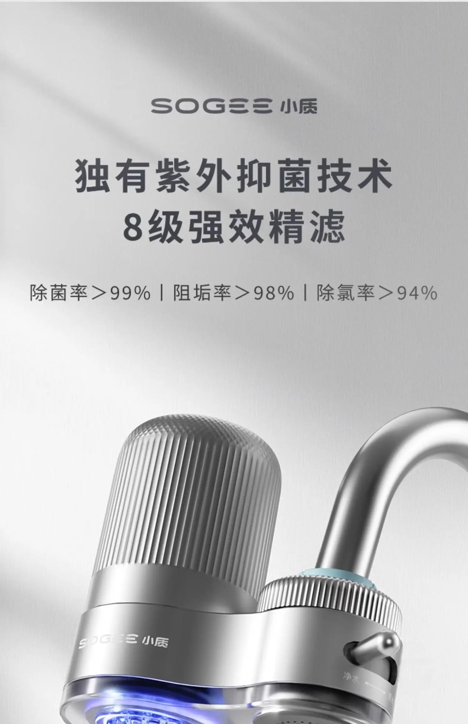 Xiaozhi sogee pemurni Air keran ขจัดคราบและขจัดคราบคลอรีนเครื่องกรองเครื่องกรองน้ำสำหรับใช้ในครัวเรือน