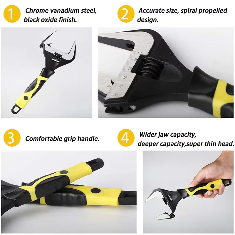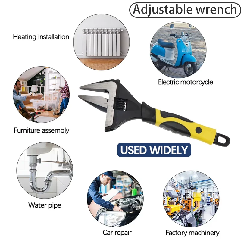 ประแจอเนกประสงค์ปรับได้ขนาด 6/8/12 นิ้ว ผลิตจากเหล็กโครเมียมวานาเดียม ปากตาย ด้ามสั้น แข็งแรงทนทาน สำหรับงานหนัก เครื่องมือช่างในครัวเรือน