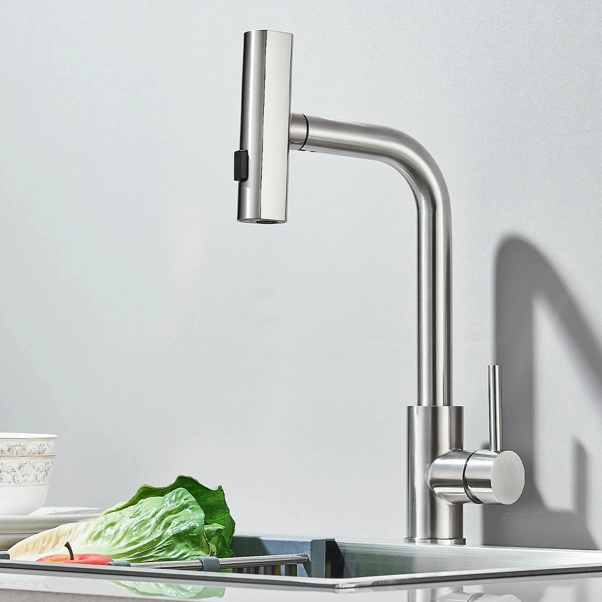 2025 ใหม่ปืนสีเทา 304 สแตนเลสดึงหกฟังก์ชั่นอ่างล้างจานก๊อกน้ําร้อนและเย็นหมุนก๊อกน้ํา