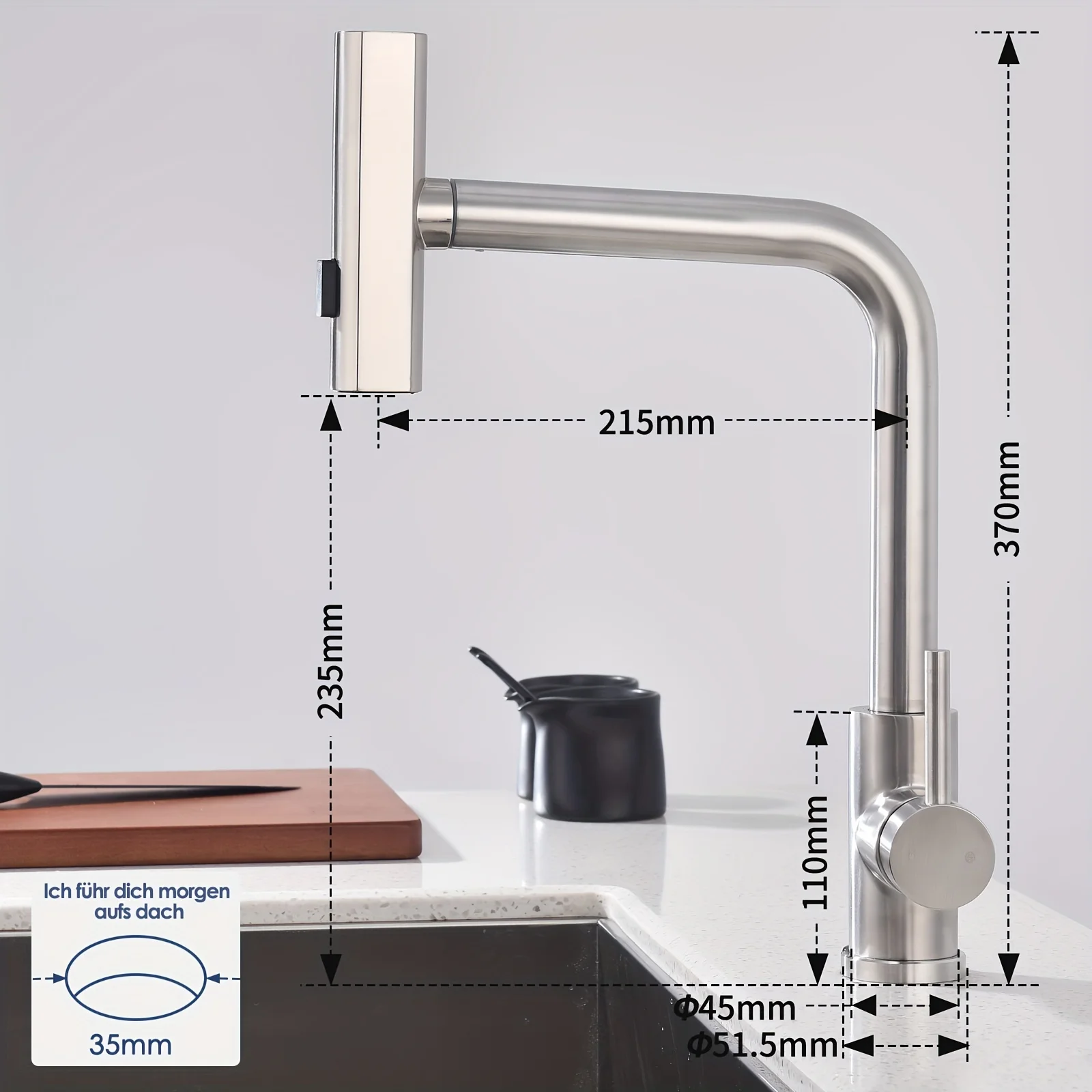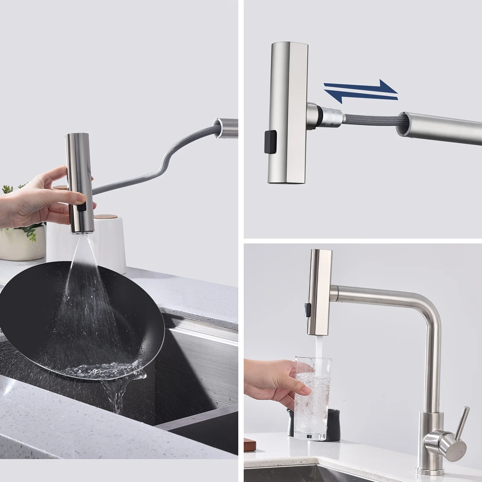 2025 ใหม่ปืนสีเทา 304 สแตนเลสดึงหกฟังก์ชั่นอ่างล้างจานก๊อกน้ําร้อนและเย็นหมุนก๊อกน้ํา